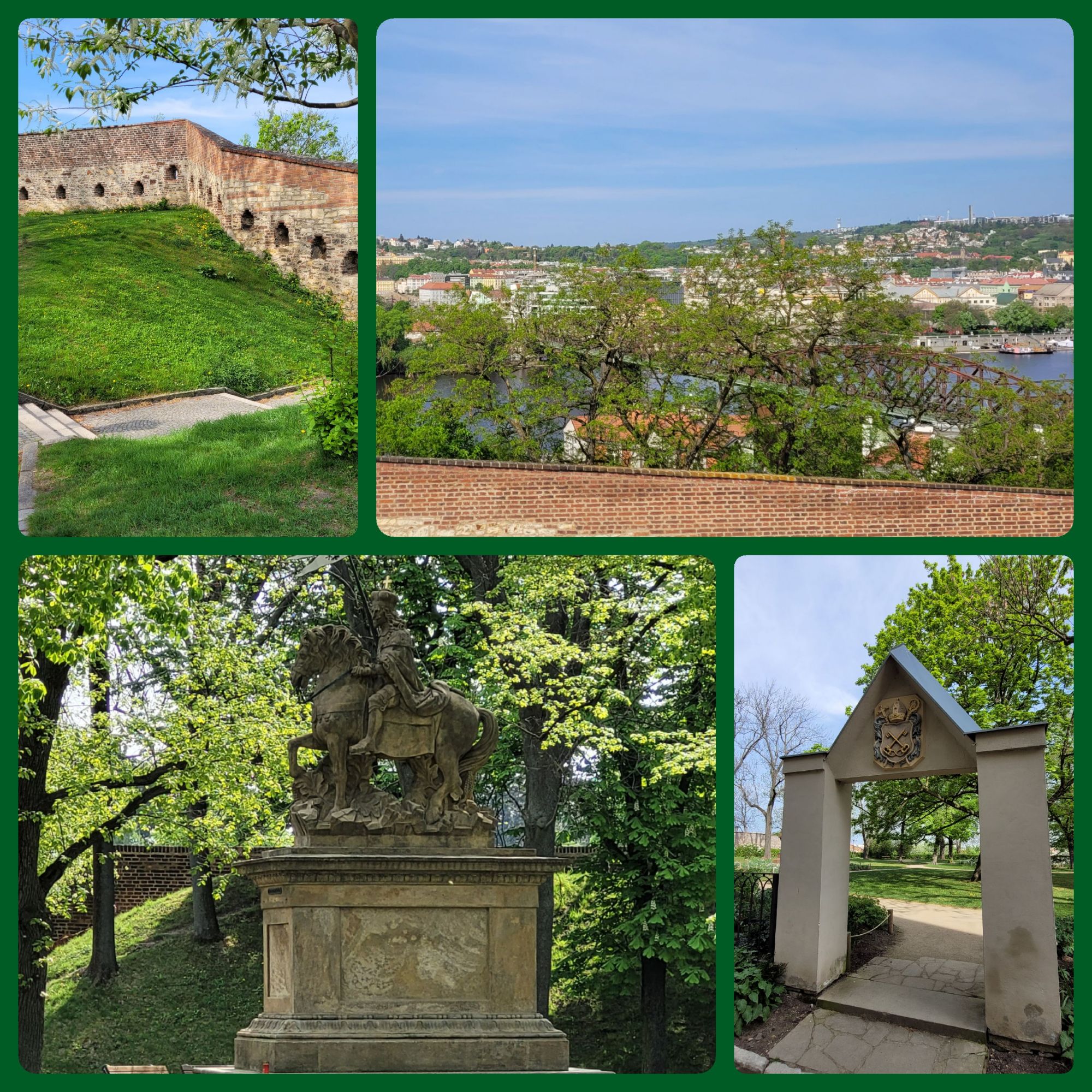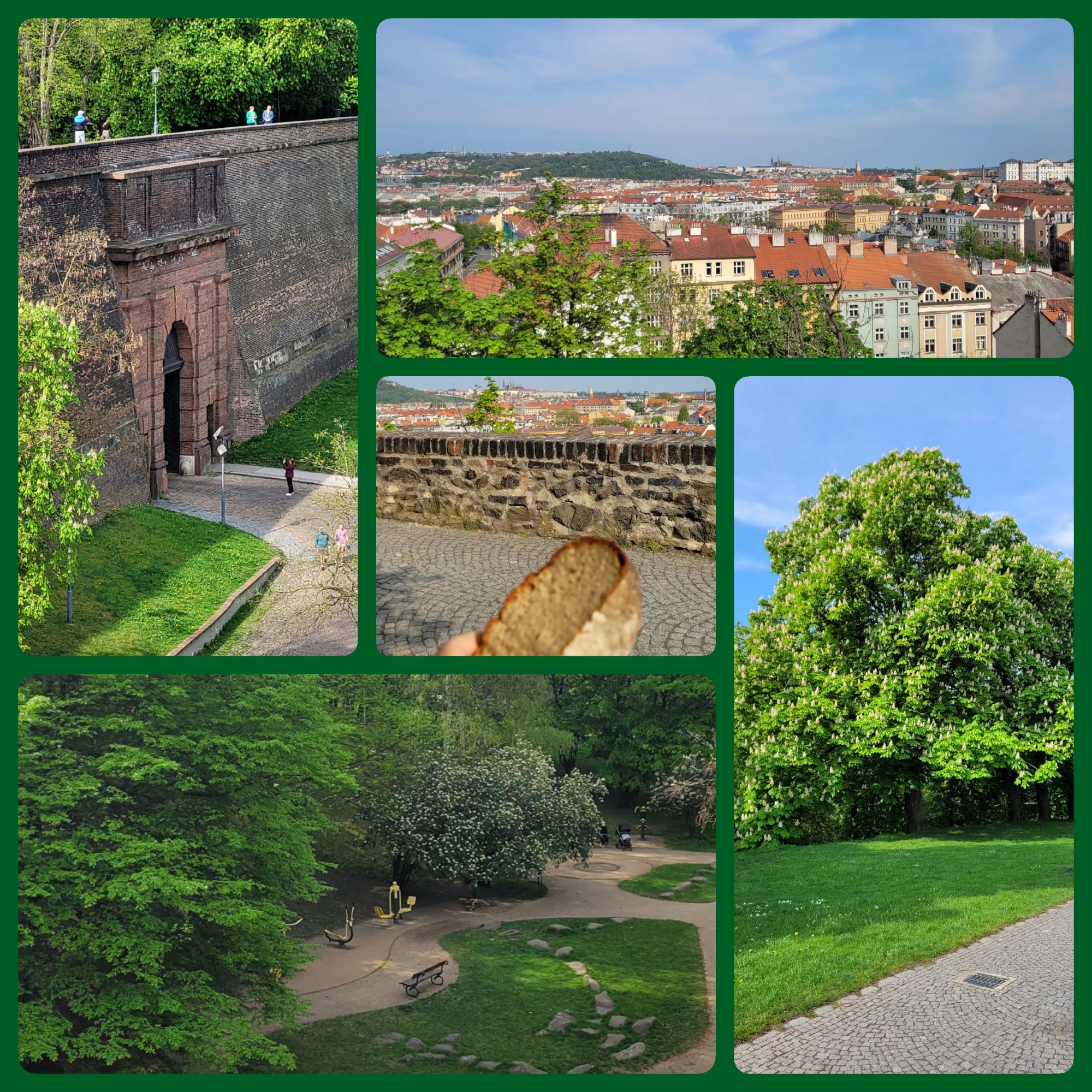 Vyšherad war die erste Burg Prags, dient heute aber hauptsächlich nur noch als Naherholungsgebiet für die Einheimischen. Wir hatten dort, bei bestem Blick über die Stadt, unser Frühstück (bestehend aus dem alten, trockenen Brot vom Mittelalteressen). Es ist eine schöne Parkanlage mit vereinzelt erhaltenen Bauwerken, wie der schön bemalten Basilika, mehreren Kapellen oder auch dem Pulverturm.