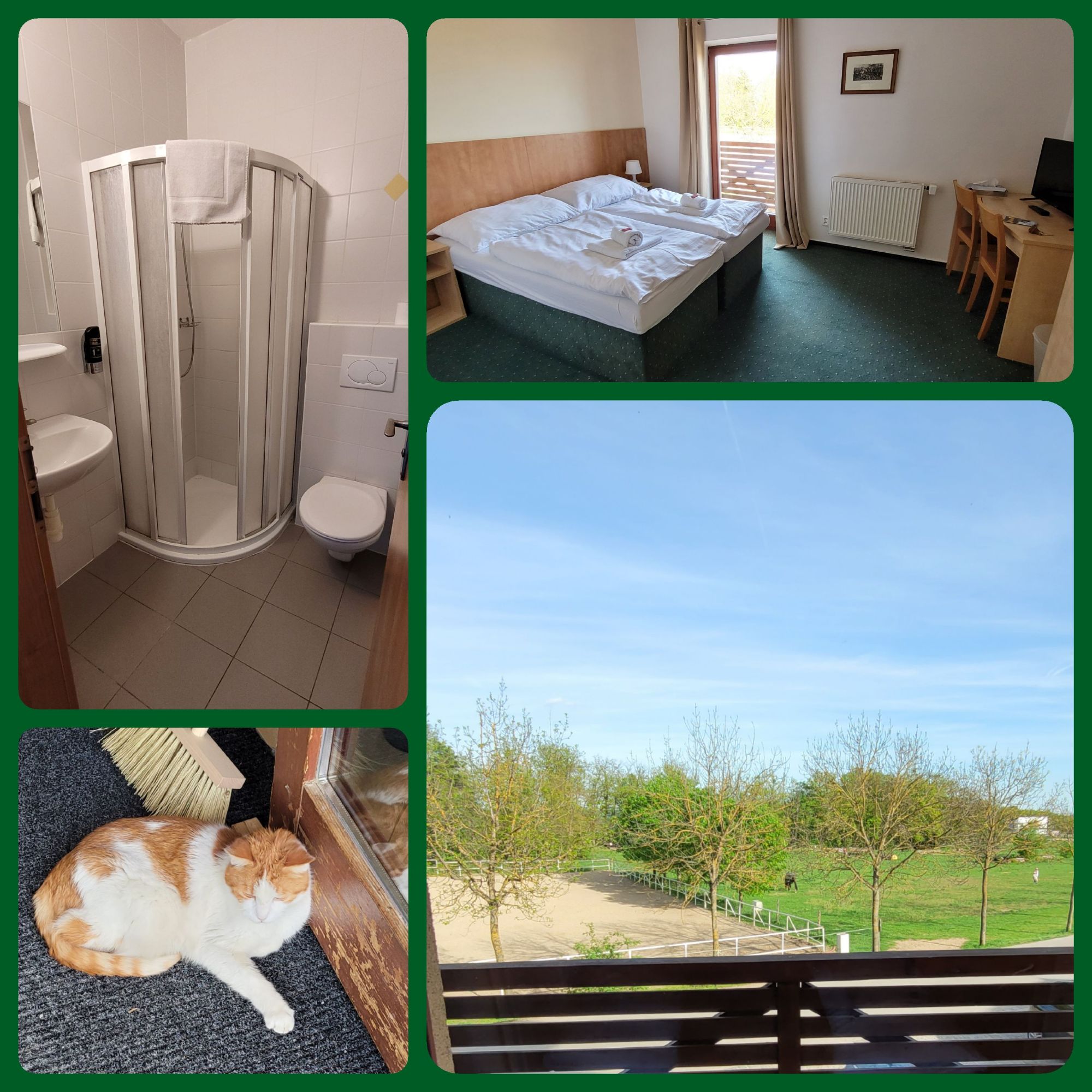 Anschließend gings nach Brünn.  Hier haben wir uns für die nächsten 3 nächste ein Zimmer in einer Pension an einem großen Reitstall gebucht. Der Stall verfügt über 2 Dressur-, 1 Spring- sowie 1 Vielseitigkeitsplatz. Außerdem div. Roundpen und Reithallen. Vom Restaurant aus kann man direkt in die Halle schauen!