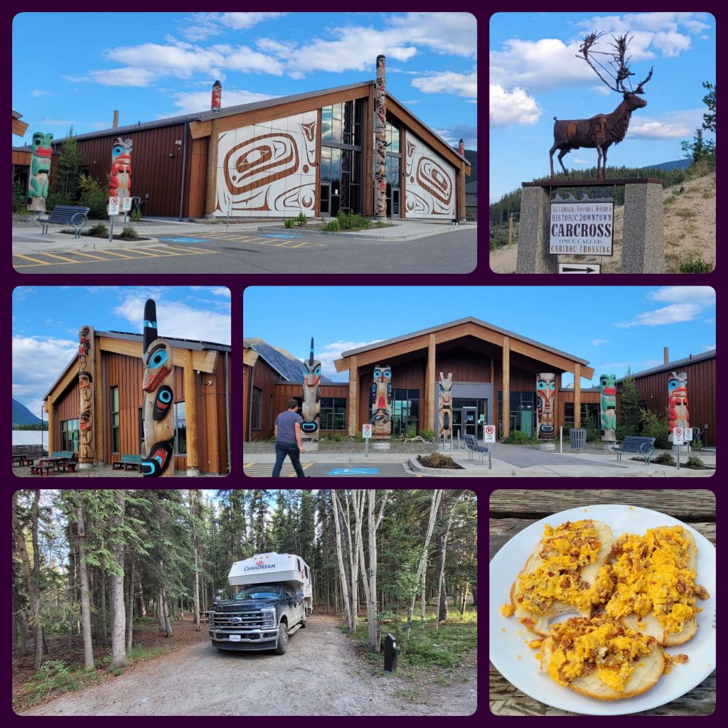 Um Viertel vor 8 kamen wir dann nach insgesamt 6 h reiner Fahrzeit gerade noch rechtzeitig im Visitorcenter an um den nächsten, wenn auch letzten Tag mit dem Camper zu planen. Die Dame dort kam aus München und ist mit 30 in den Yukon ausgewandert. 😂 Der heutige Campground wird von den Leuten der Tagish First Nations verwaltet und bereitgestellt.