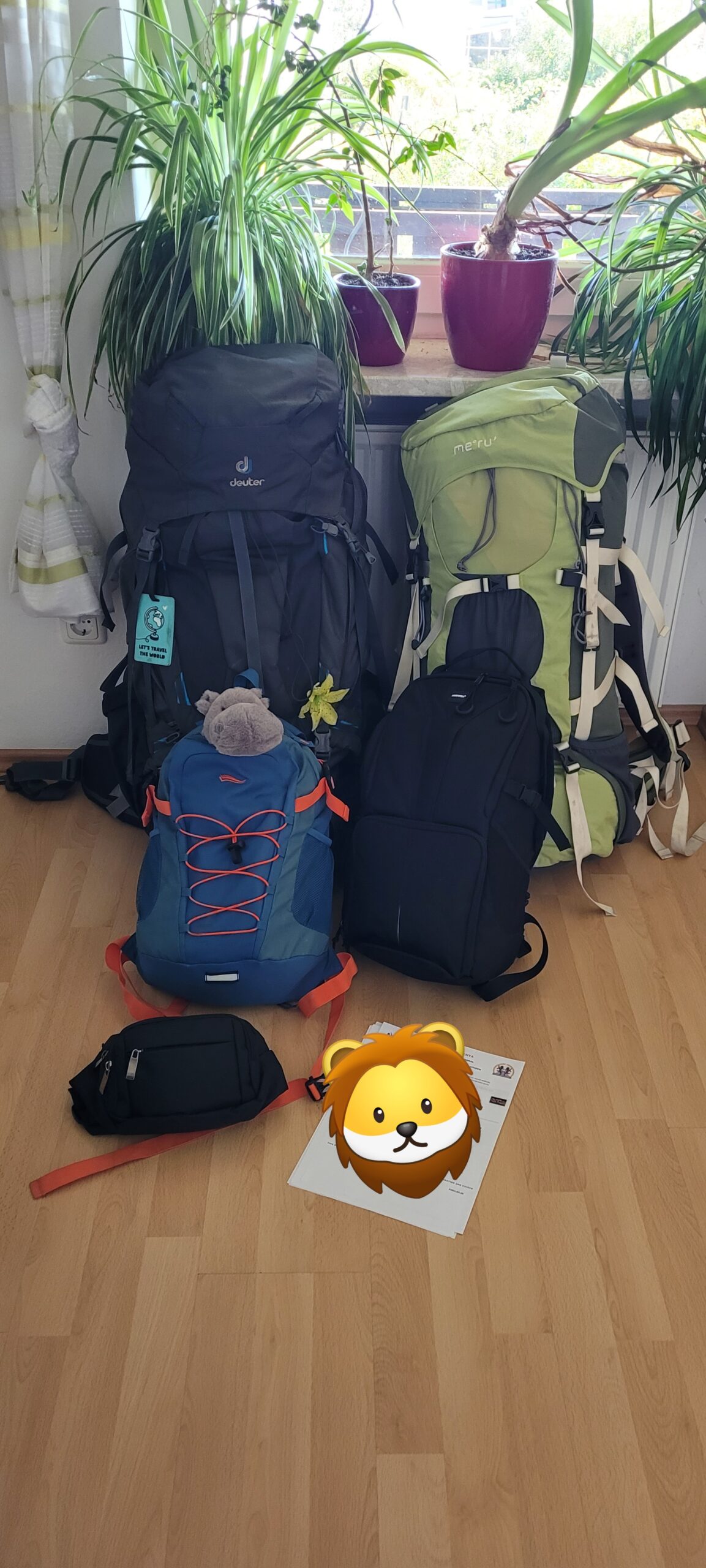 Hühnchen und Fische sind sauber und versorgt, Haus und Hof sind auch auf vordermann und gepackt ist jetzt auch endlich alles. Jeder Rucksack bringt es jetz auf gute 15 kg.