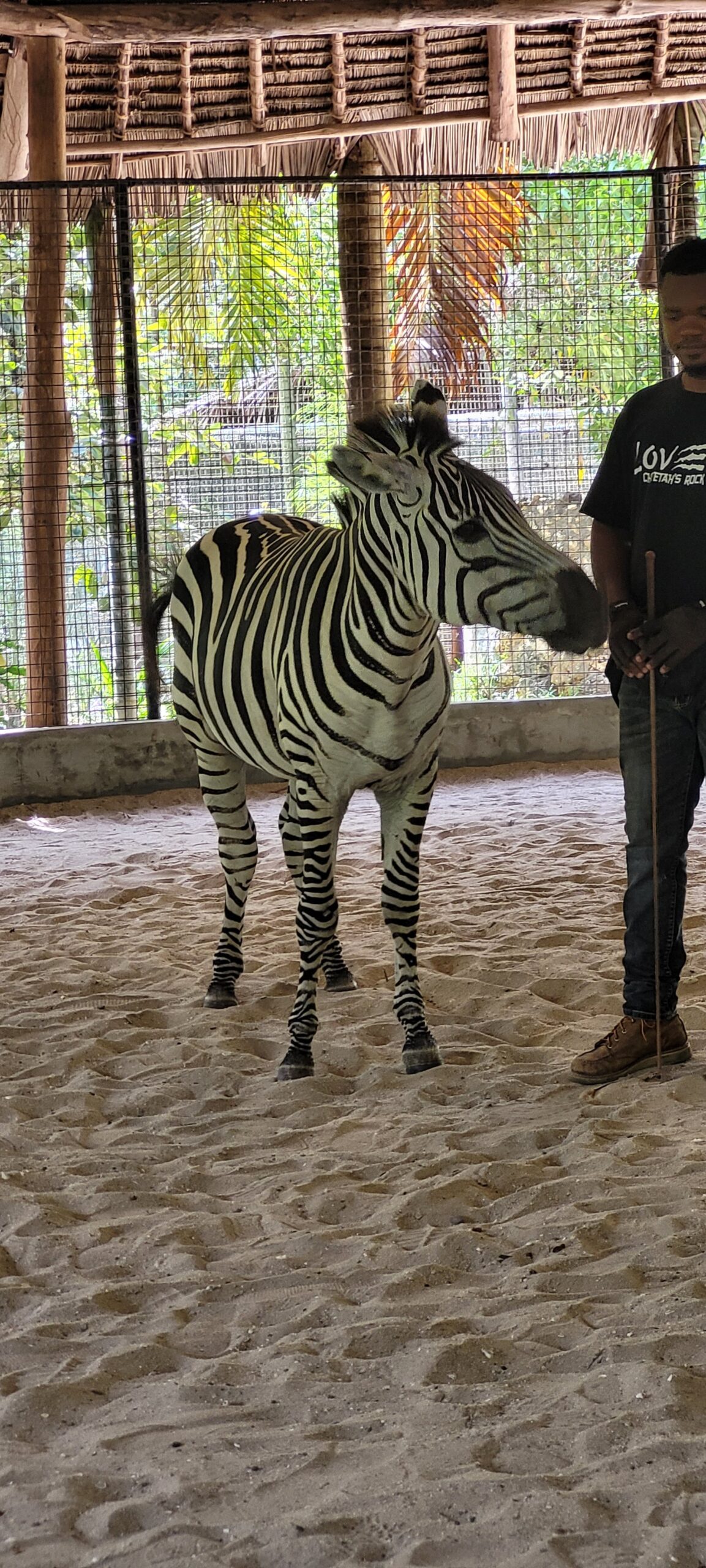 Zu Beginn durften wir chakka das Zebra kennenlernen und eine Tricks mit ihm machen.