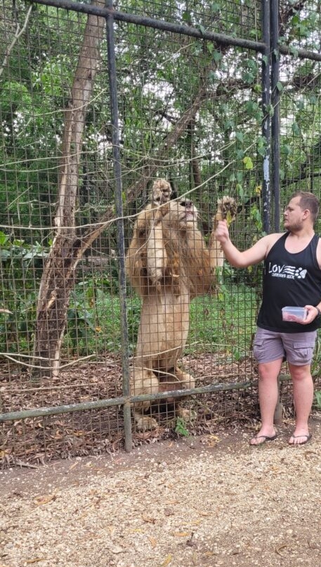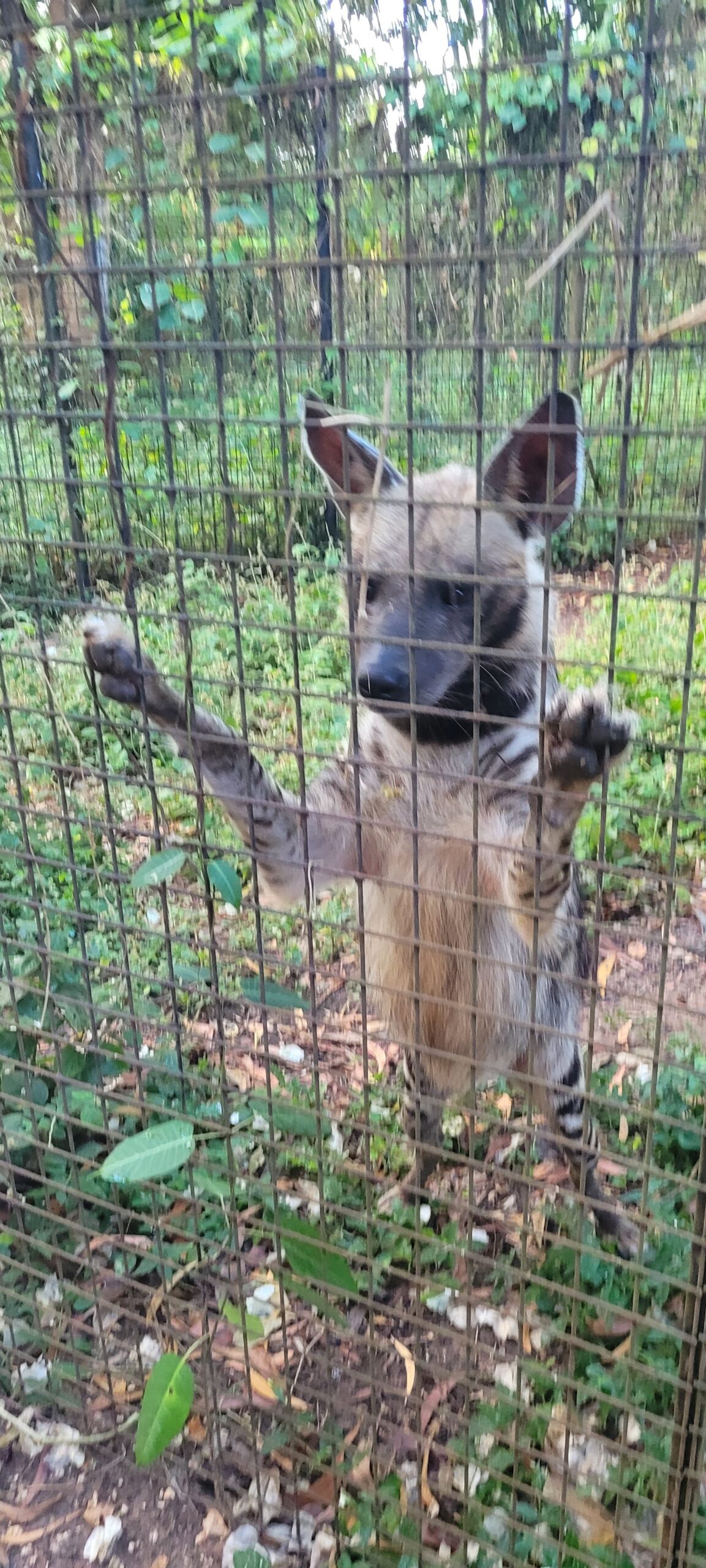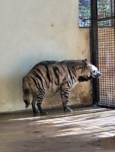 Weiter gings zu den Streifenhyänen, welche wir mit Apfel füttern durften.