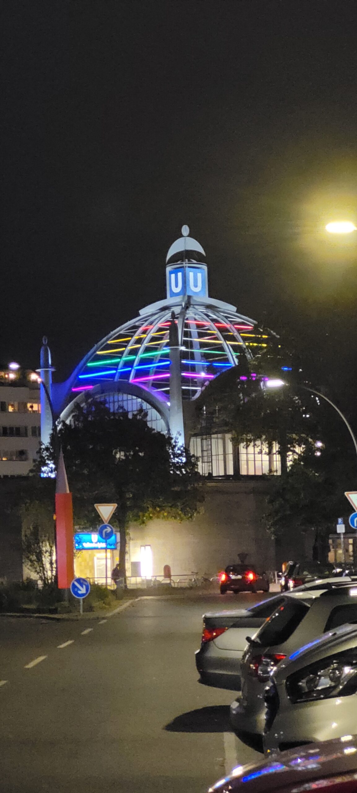Dann war für heute Schluss und es ging wieder zum Hotel. Unsere U-Bahn Station leuchtet heute in Regenbogenfarben.