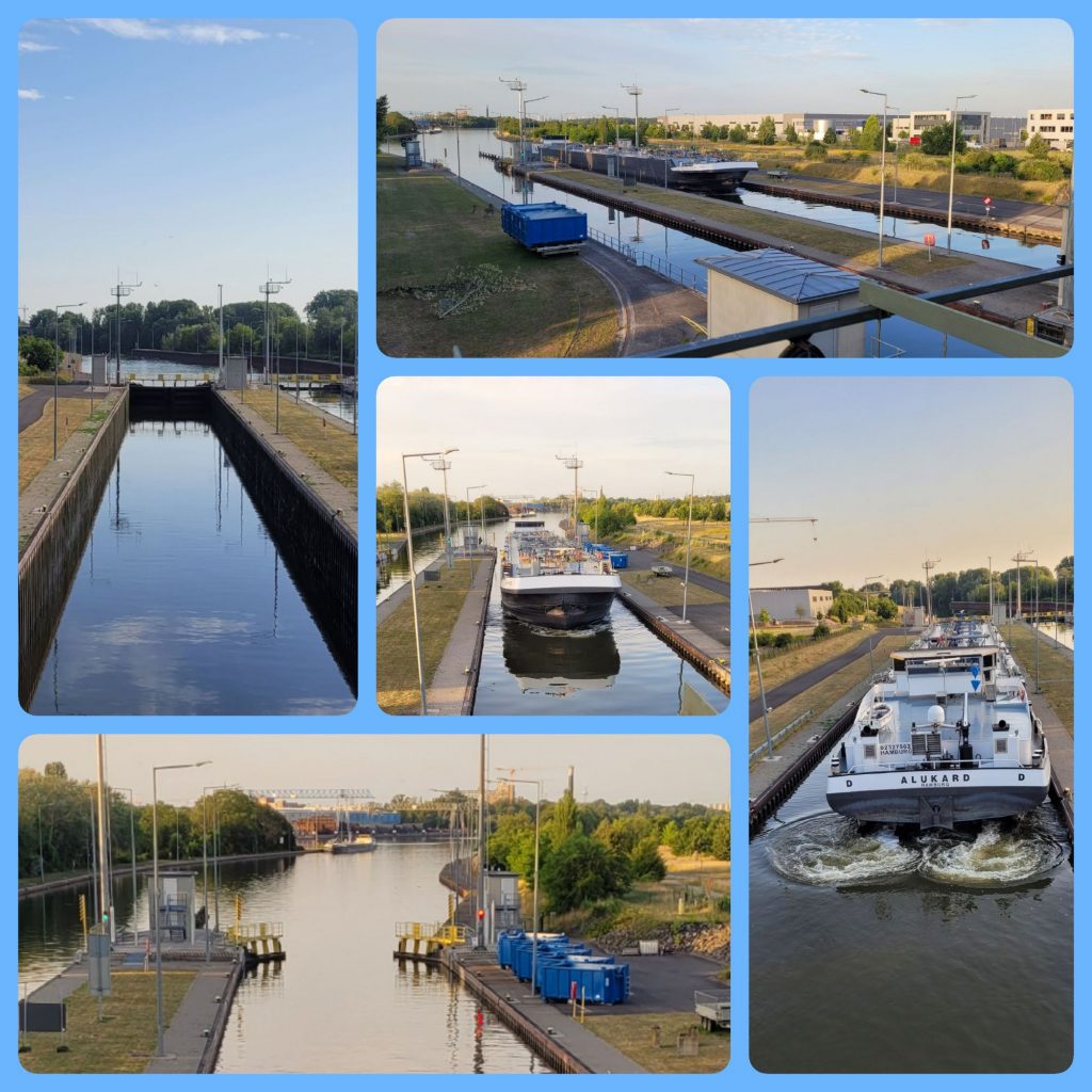 Auf dem Rückweg haben wir einen Tanker beobachtet, wie er die Schleuse passiert hat.