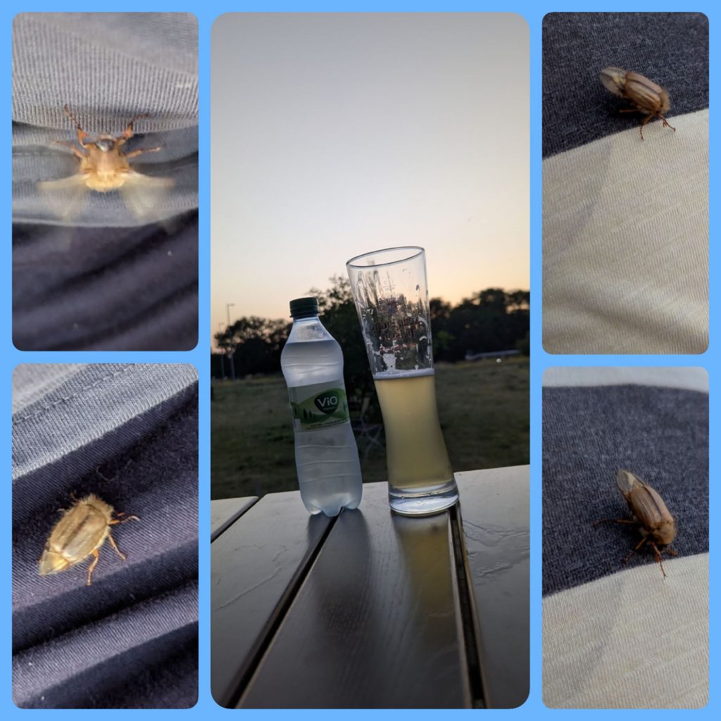 Als Absacker haben wir uns in der Hotelbar noch ein paar Getränke genehmigt und sind dabei von Junikäfern umschwärmt worden 🪲😅