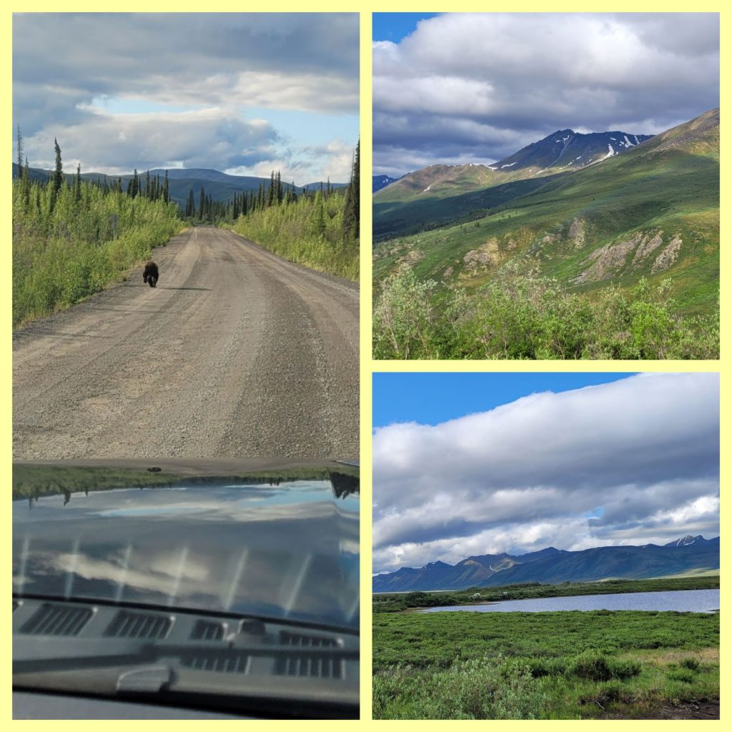 Zum Glück sind wir gestern noch soweit zurückgefahren, wie wir konnten… So erreichten wir Dawson City „bereits“ um 12 Uhr, nach 4 Stunden 30 Min Fahrt. Auf dem Weg könnten wir mehrere Hühner, Hörnchen, Hasen und… Einen Grizzly Bären sehen! Leider haben wir kein gutes Foto, weil er im vollen Galopp unterwegs war und gleich in die Büsche abgebogen ist.