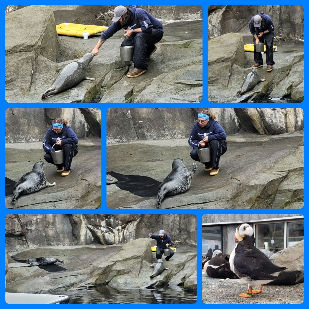 Nach einem kurzen Frühstück gings los nach Downtown Seward in das Alaska Sea Life Center. Dort gibt es ausschließlich hier heimische Meerestiere zu bestaunen. Das Center hat einen öffentlichen Bereich in dem sie u.a. nicht mehr auszuwildernde Vögel, Robben🦭 und Seelöwen zeigen und einen eher abgeschotteten Bereich, in dem Fund- und Waisentiere wieder aufgepeppelt und anschließend wieder frei gelassen werden. Ein besonderes Becken, war das Streichelbecken. Die Seesterne, Anemonen, Seeigel, Krebse und Langusten durften berührt werden. 🦀