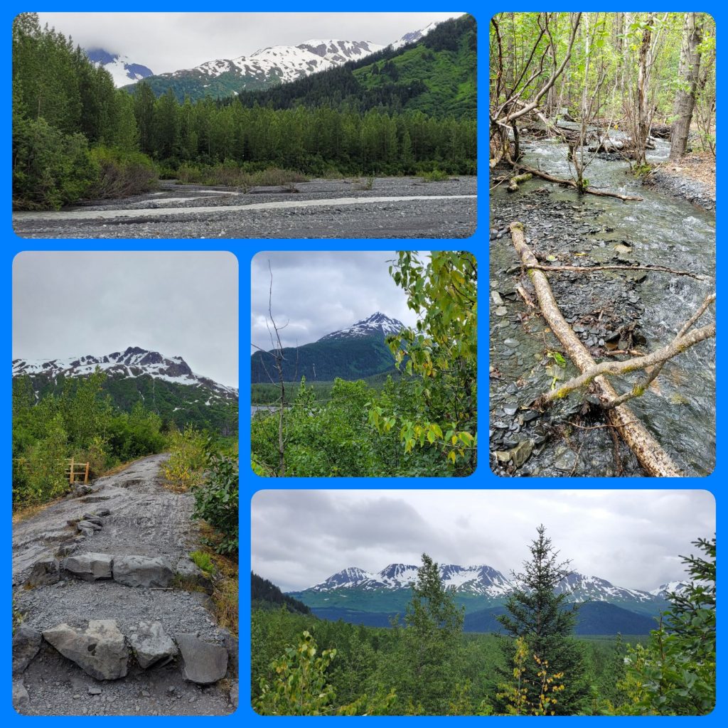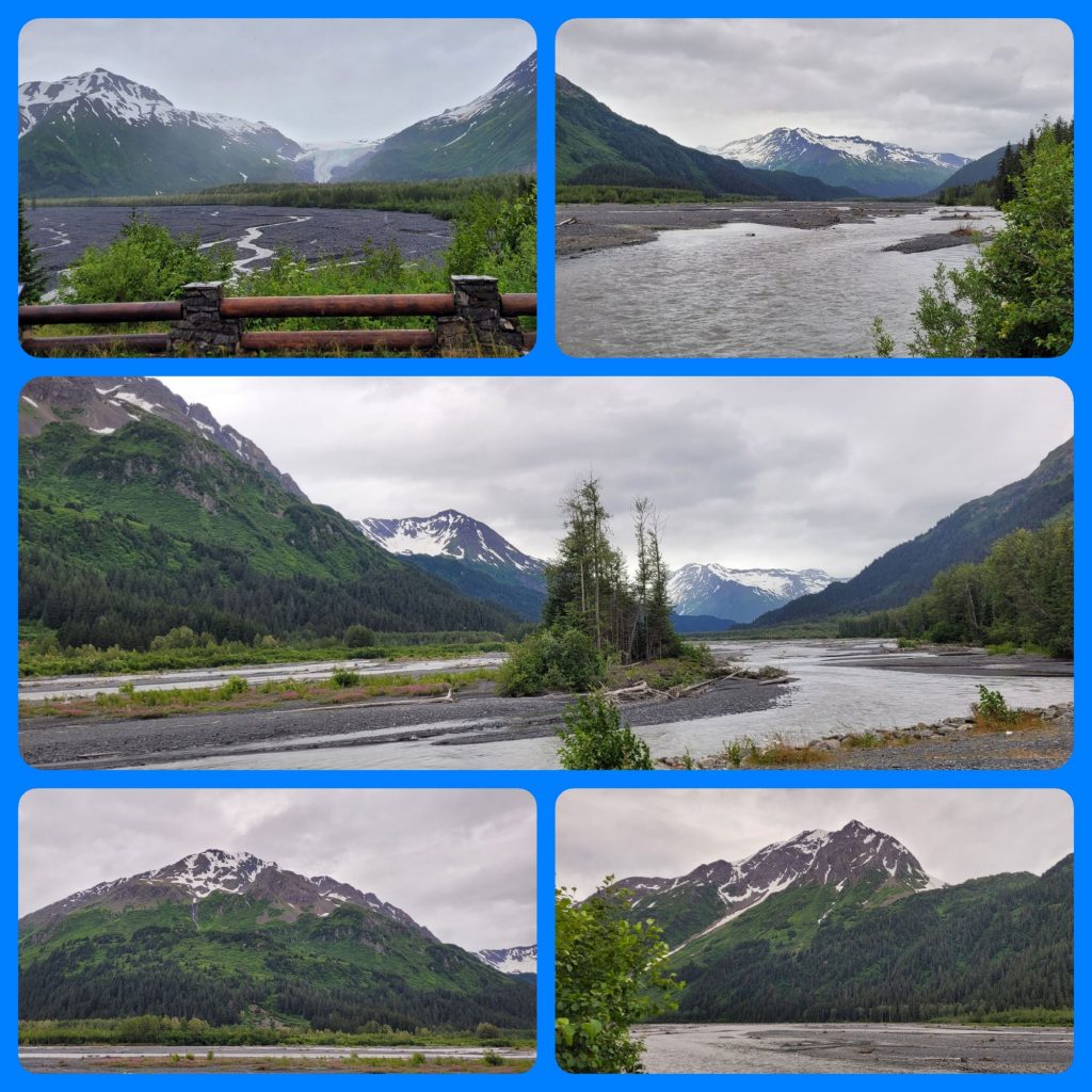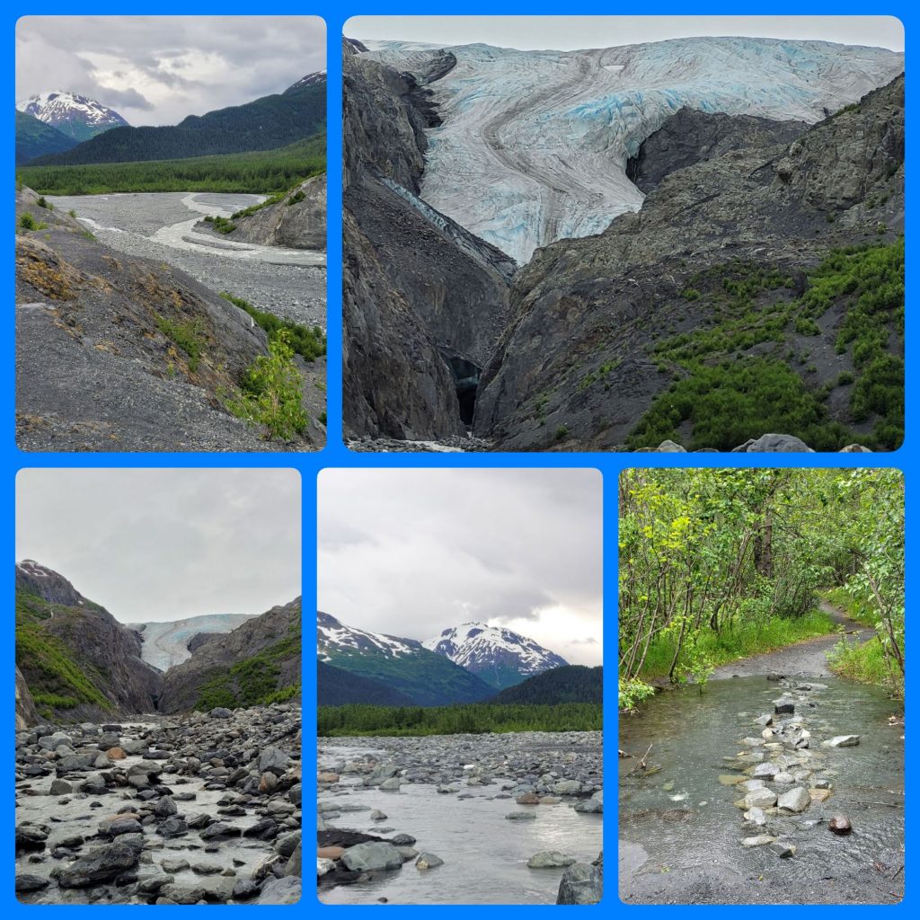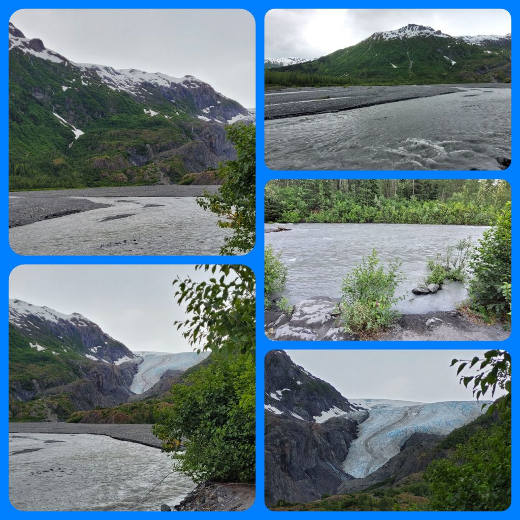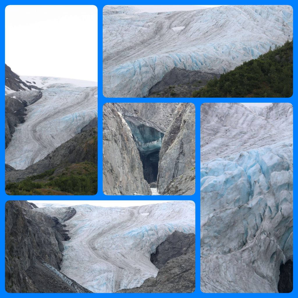 Zum Glück hat das Wetter heute doch etwas besser gehalten, als gedacht. Daher haben wir uns noch auf den Weg zum Exit Glacier gemacht. Hier war an der Zufahrtsstraße schon angeschrieben, wie groß der Gletscher früher war und wie klein er jetzt nur noch ist. Noch 20 Jahre, dann gibt es ihn wohl nicht mehr… 😕 Trotzdem war es landschaftlich sehr schön und -noch- ist ja etwas Eiszu sehen.