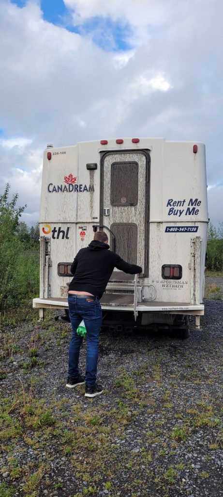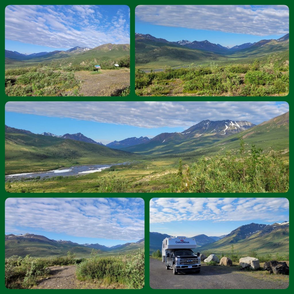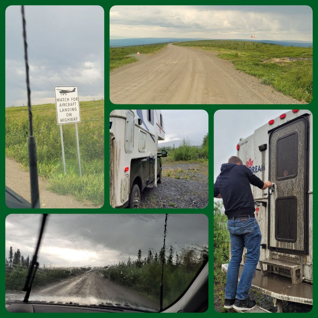 Ursprünglich wäre die Idee gewesen, bei Eagle Plains (ca 36km südlich des Polarkreises) zu übernachten. Aufgrund der Tatsache, dass die Reisegeschwindigkeit überschaubar ist, haben wir uns entschieden, so lange es geht weiterzufahren. 3 Stunden (um 19 Uhr…) später haben wir uns in einer Seitenstraße zum Highway bettfertig gemacht.