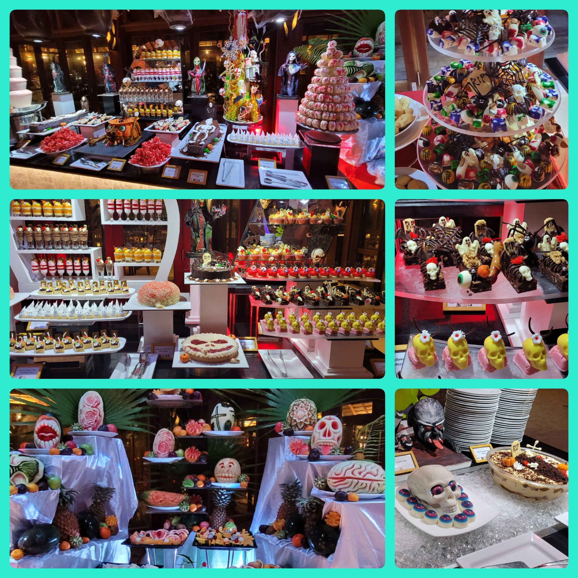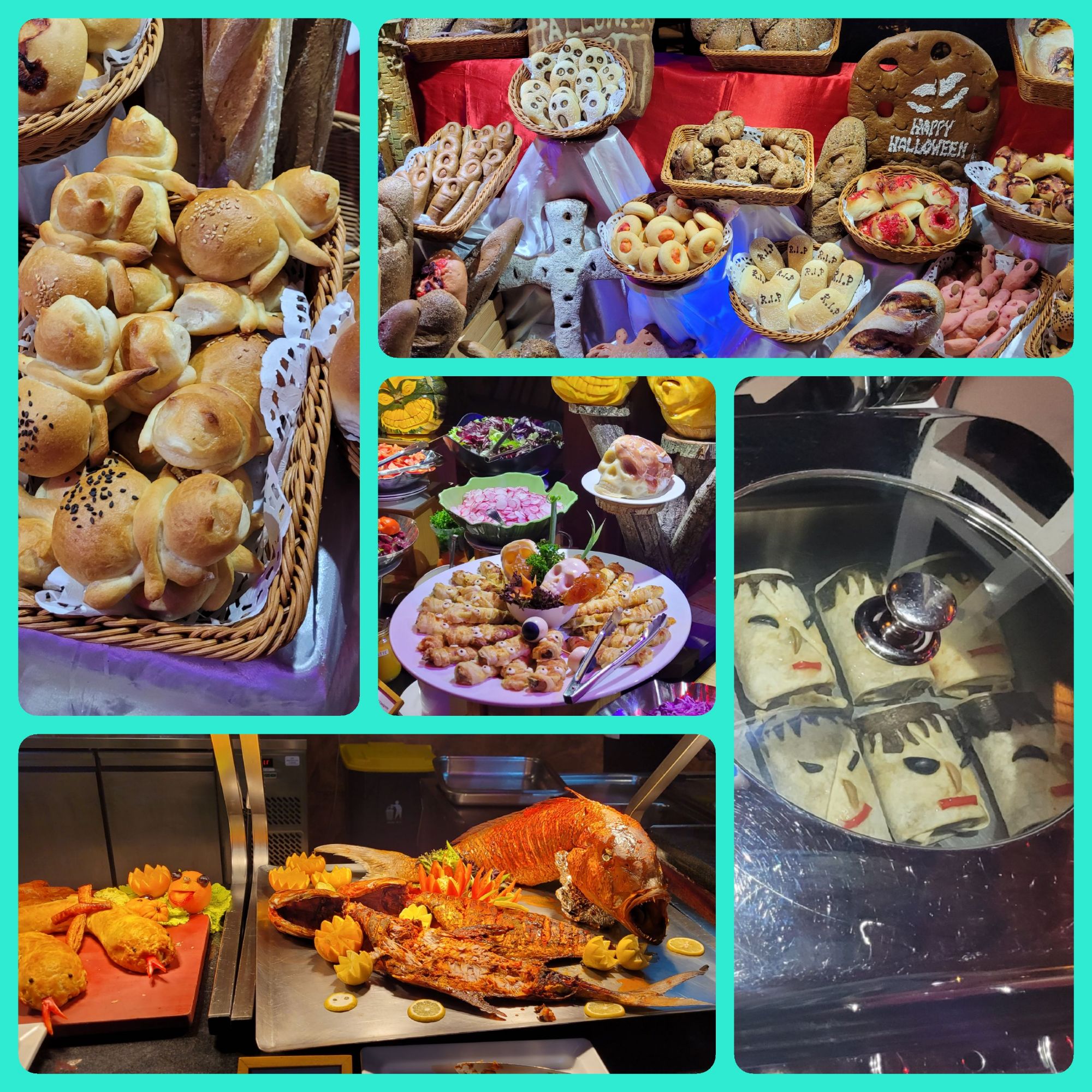 Zum Abendessen gab’s dann ein riesiges Halloween Themenbuffet, von dem wir viel zu viel gegessen haben – es musste ja schließlich alles probiert werden 😜