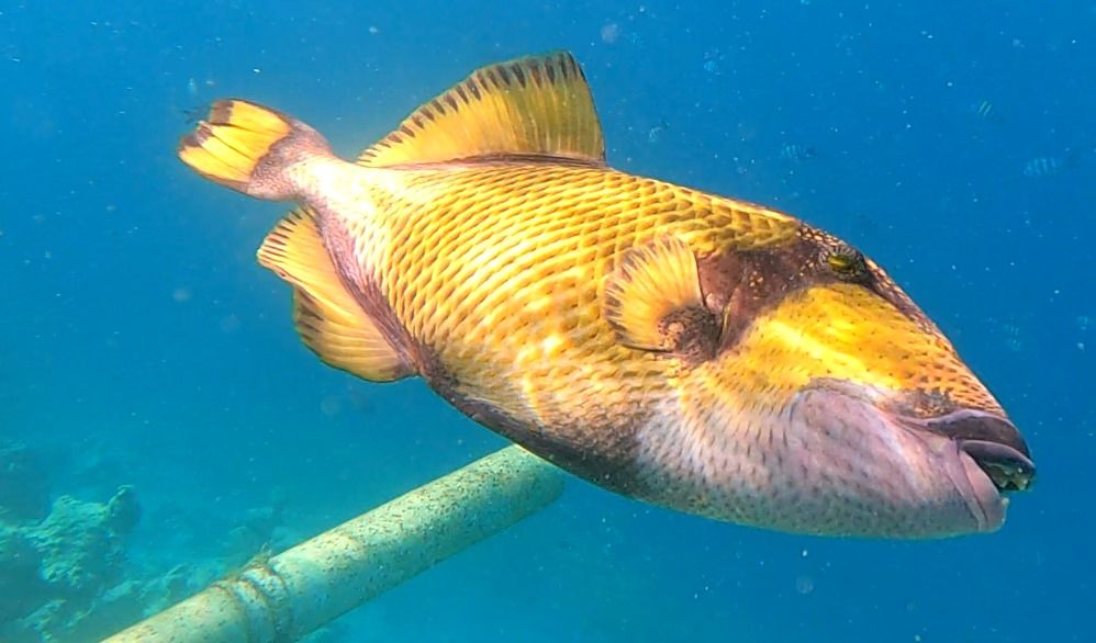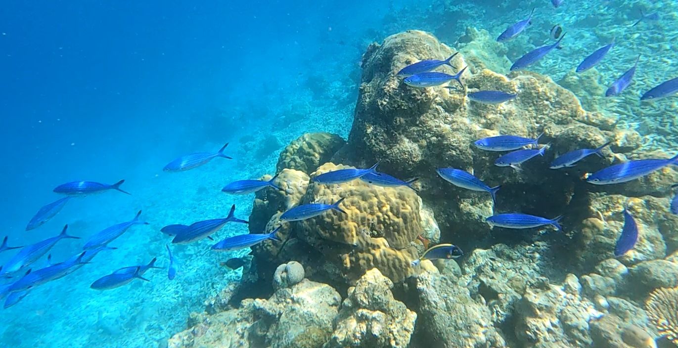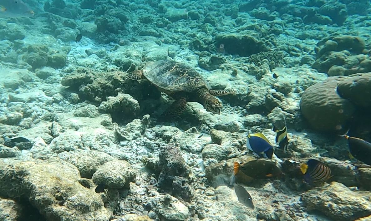 Obwohl eigentlich fix und fertig von der langen Anreise, ging es keine 5 Minuten später rein in die Badeklamotten und Schnorchelmontour und ab ins Hausriff.