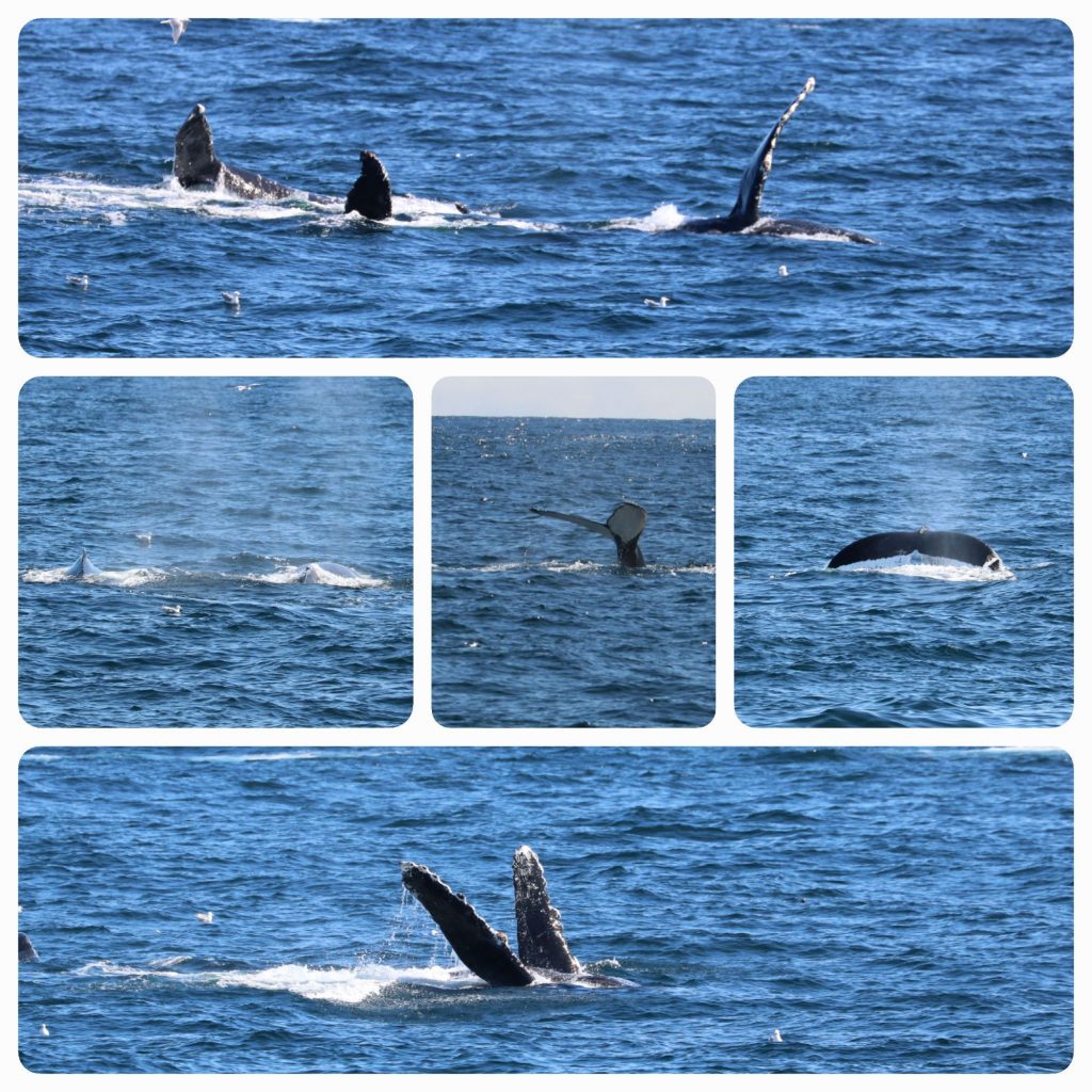 Und dann das absolute Highlight (dafür hat sich für mich der Urlaub überhaupt schon gelohnt)! Buckelwale, die in der Gruppe Jagd machten. Ist das schon selten anzutreffen… Und dann fingen sie an zu spielen! 🥰 Platschen, springen, Flossen aus dem Wasser – einfach ein tolles Erlebnis. 🐋🐳 Unsere Kapitänin, die immer mit kommentiert hat, schien auch einen Moment sprachlos gewesen zu sein. „Absolutely rare occasion“. Zum Glück war die 8 Stundentour ausgebucht. So konnten wir bei diesem einmaligen Schauspiel dabei sein. 🥰