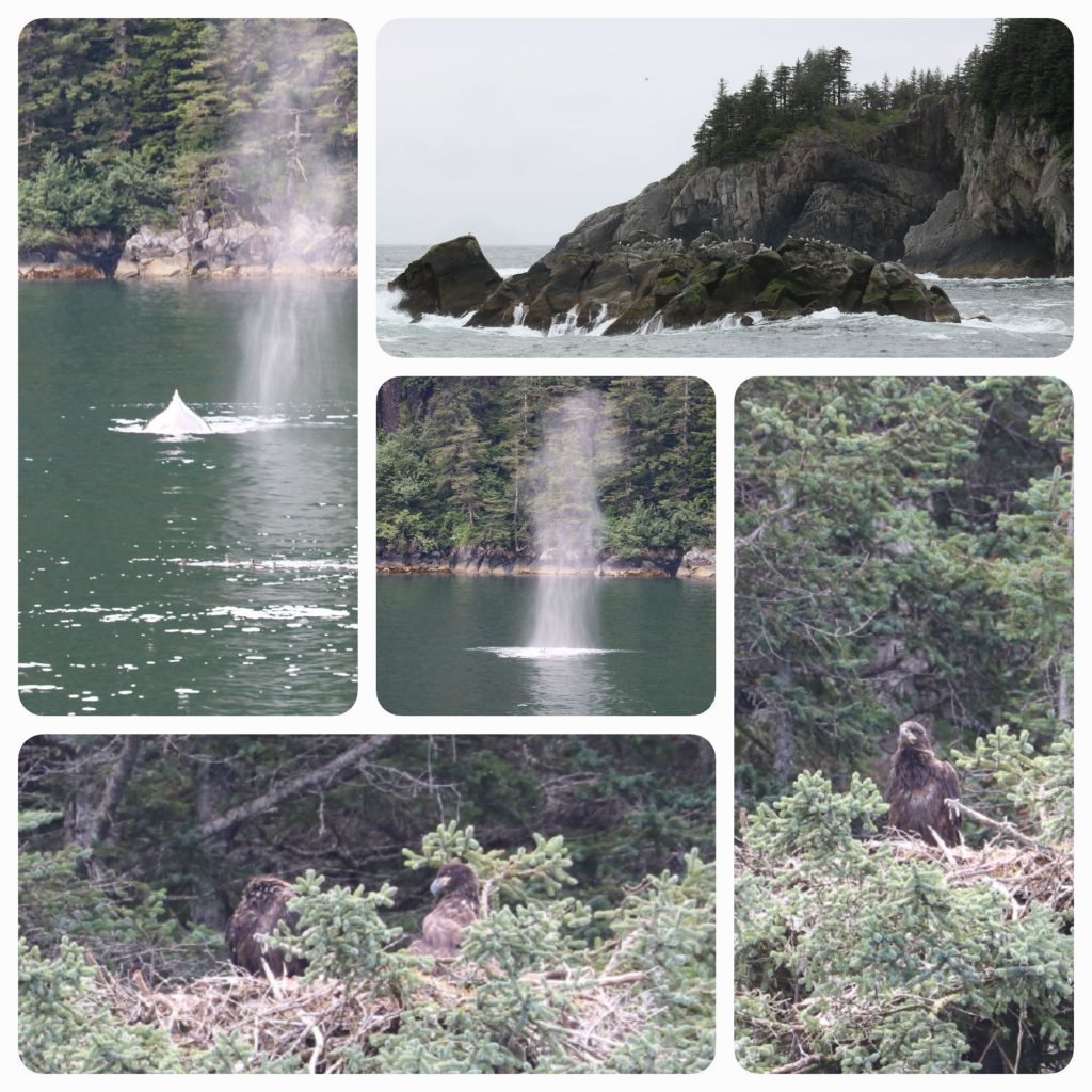 Um 11:30 legte unser Katamaran, die „Skana“ ab. Zuerst durchs ruhige Hafenwasser, schließlich befindet sich Seward am Ende des Fjords „Ressurection Bay“. Nach wirklich kurzer Fahrt, neben einem Seeadler direkt am Hafen 😂, bereits das erste Highlight: ein Buckelwal!