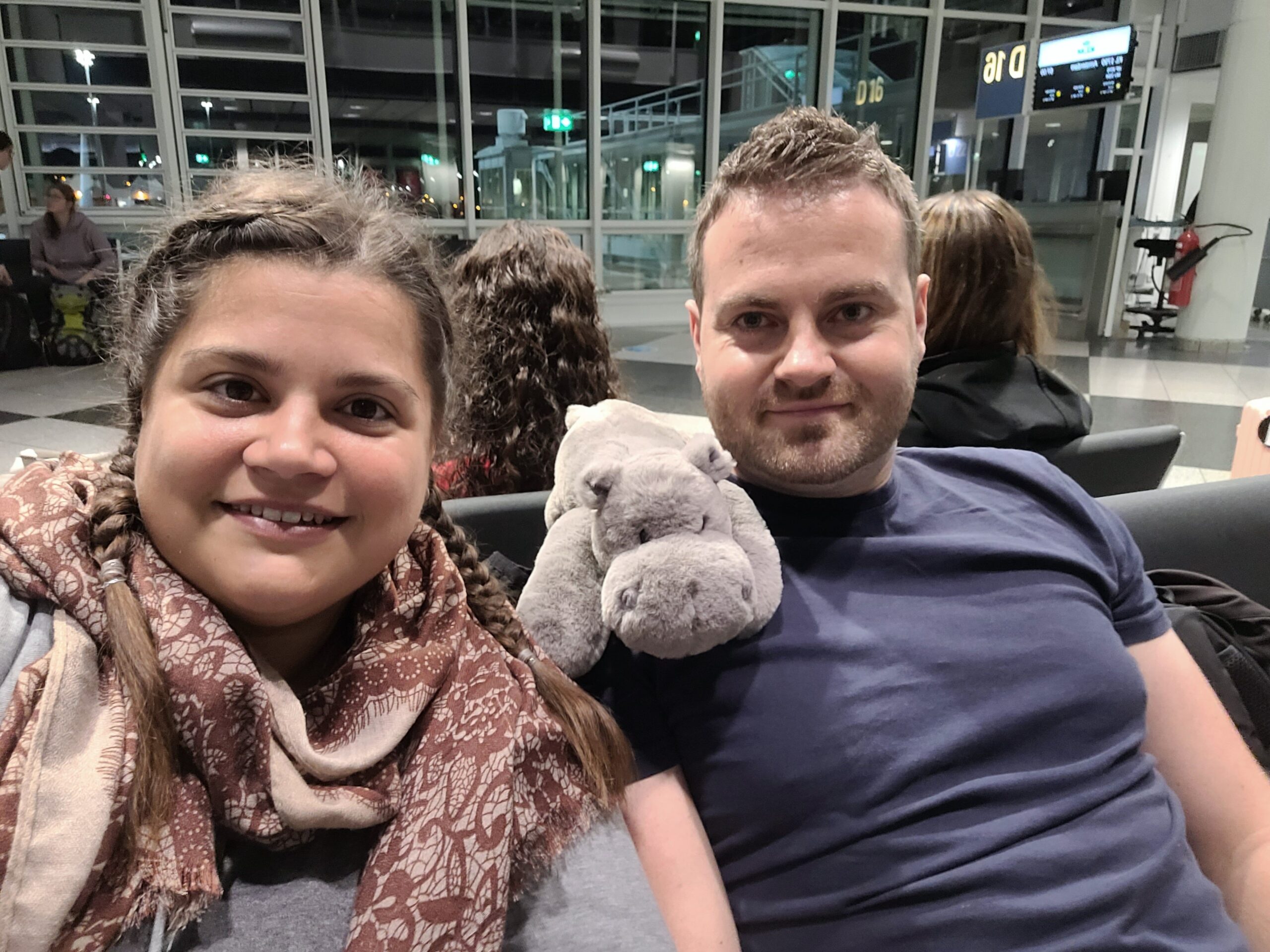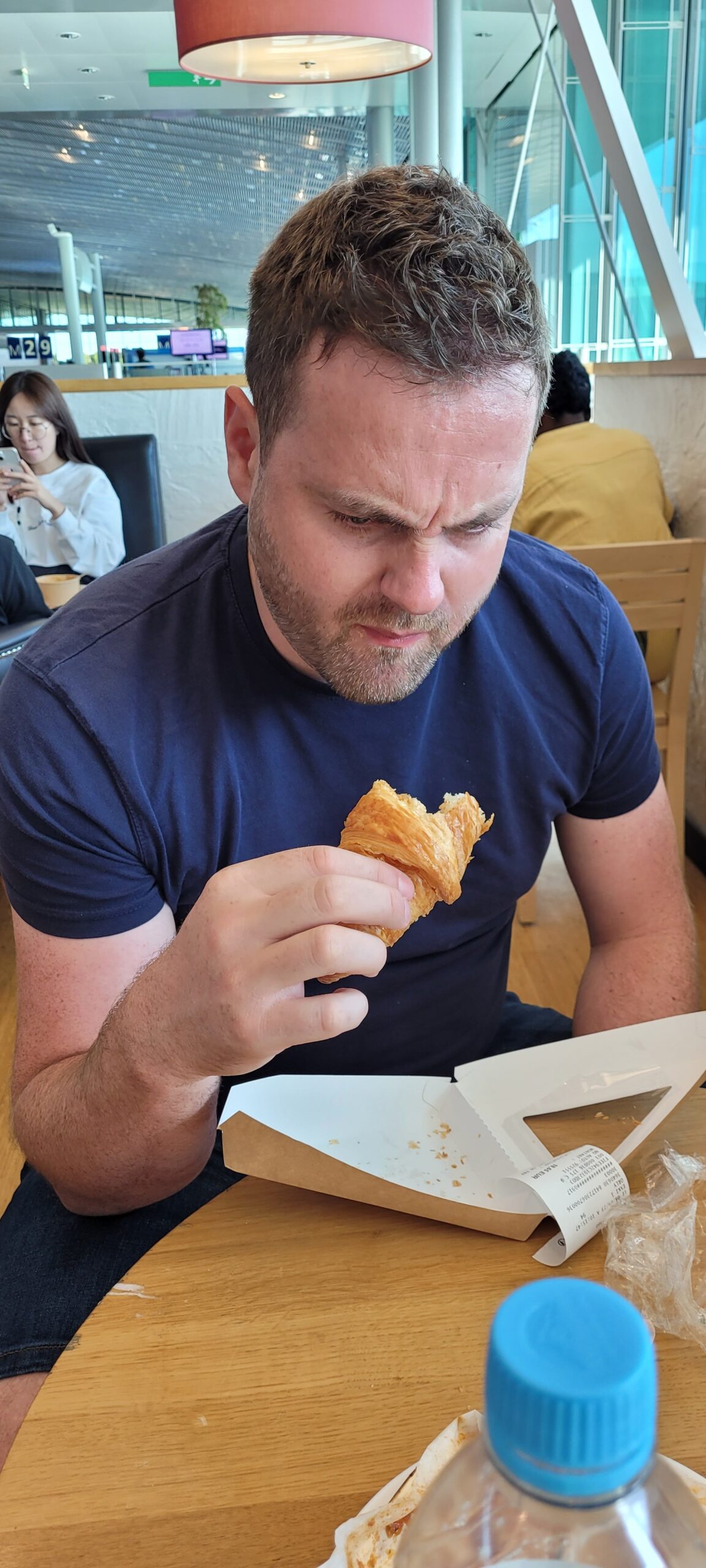Am Gate angekommen gab es dann erst mal lecker Baguette und Croissant. Naja, dachten wir zumindest…..