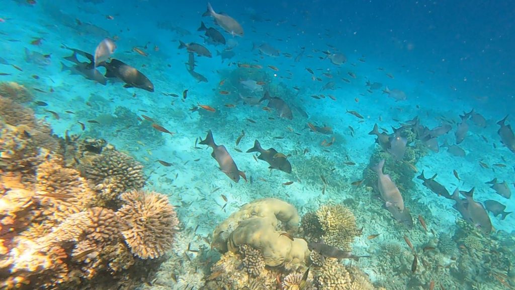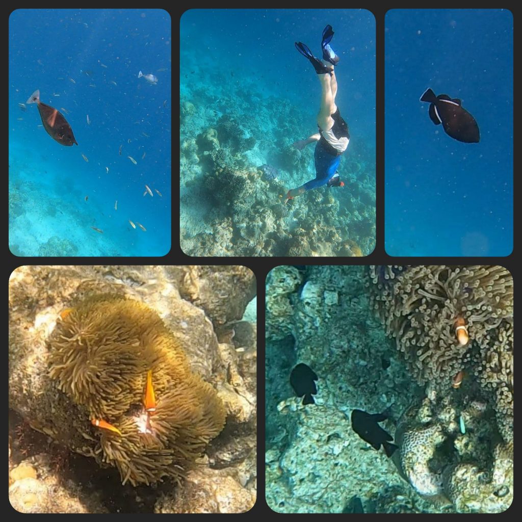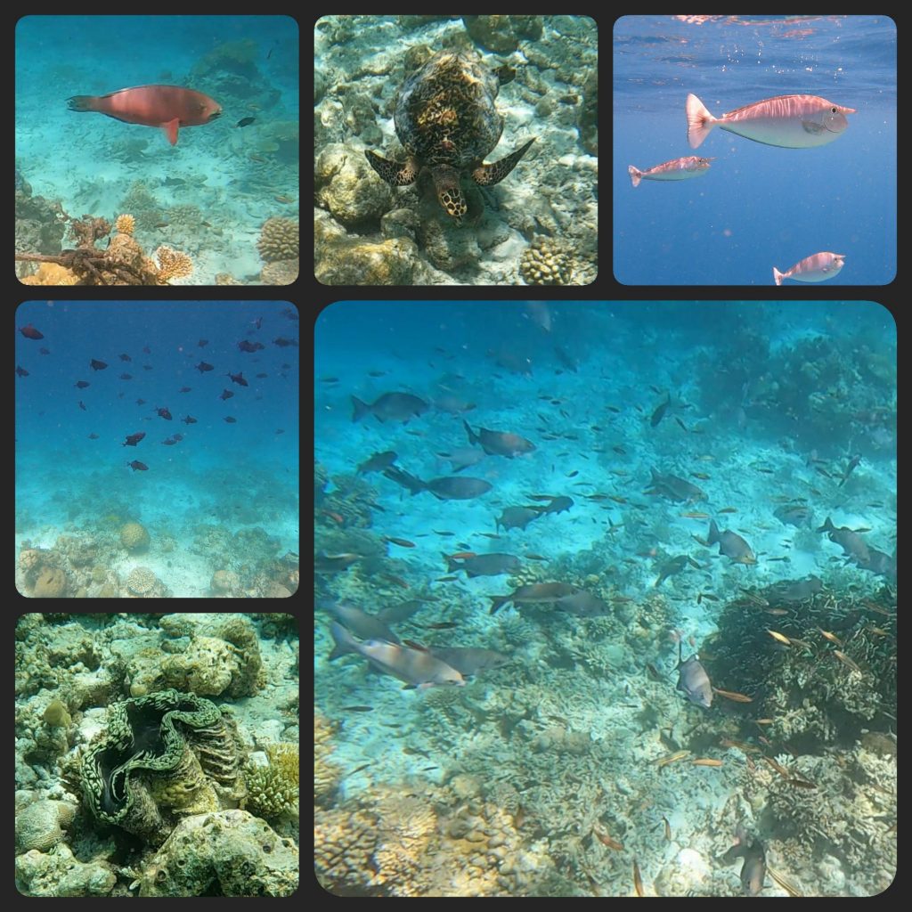 Nach einem entspannten Frühstück gings heute zum Schnorcheln auf die Südseite der Insel. Wieder eine ganz andere Optik mit vielen neuen, bunten Korallen und allen möglichen Fischen. Wir waren fast 2 h im Wasser 😅