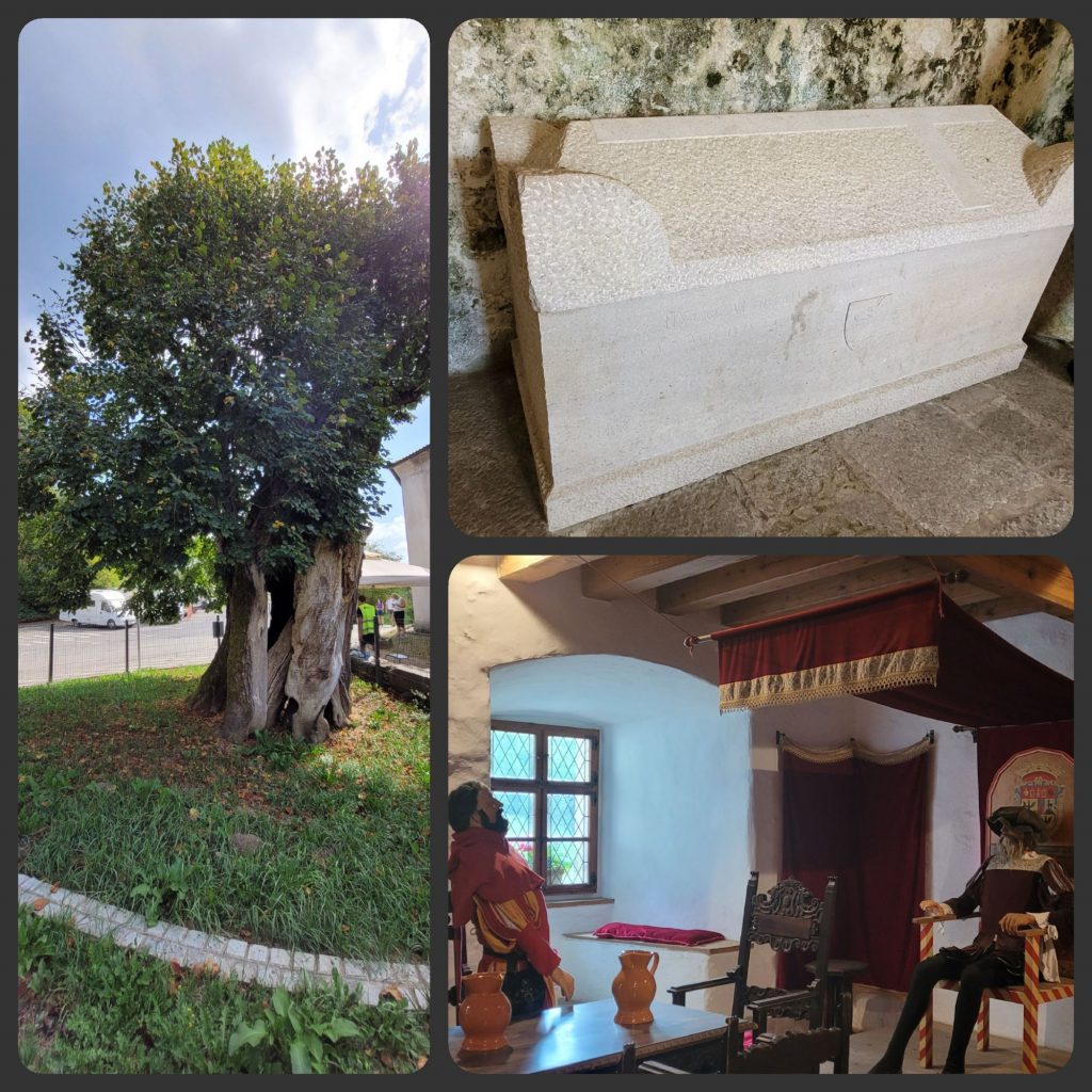 Die Linde 🌳, die seine Frau 1484 über seinem Grab gepflanzt hat, steht auch heute noch neben der Kapelle im Ort Predjama.