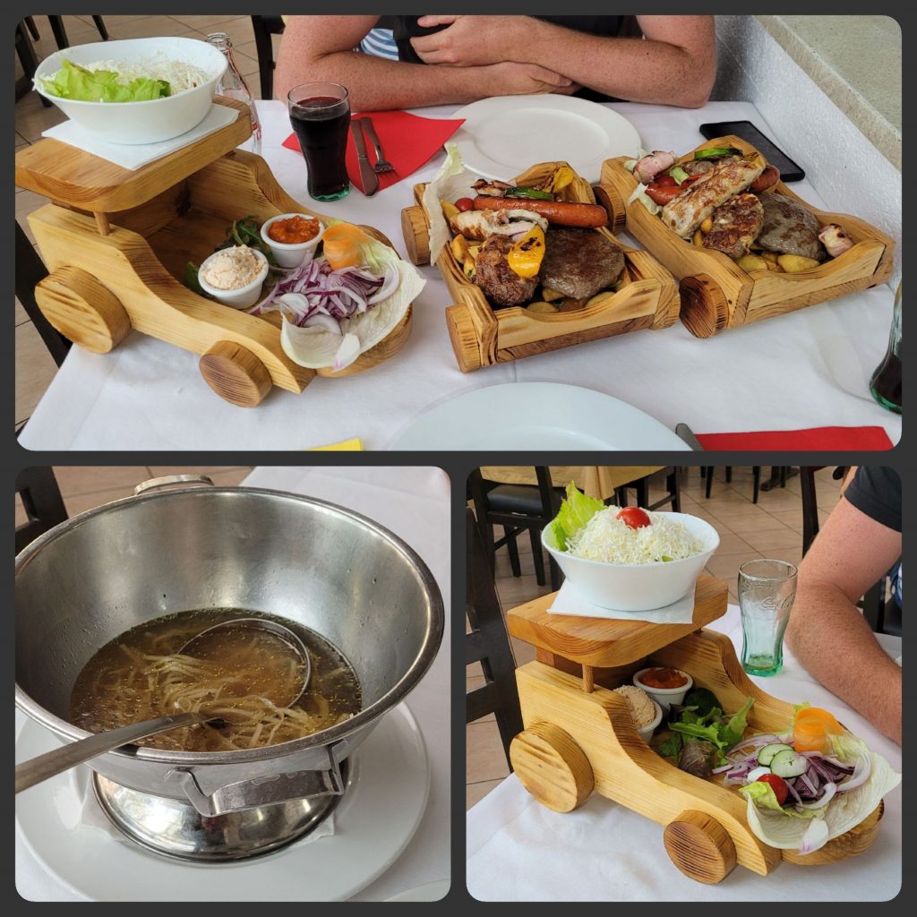 Nach entspannten 20 Minuten anstehen beim Parkautomaten im Platzregen, hatten wir Hunger und uns auf der Strecke nach Hause ein Restaurant rausgesucht. Eigentlich nur ca. 30 min von Postojna entfernt. Eigentlich…. tatsächlich haben wir dank Stau knapp 1 h 20 gebraucht. Das Essen war dann jedoch umso besser 😋 Markus hat endlich seine gemischte Fleischplatte (oder in unserem Fall, Fleischzug) bekommen.