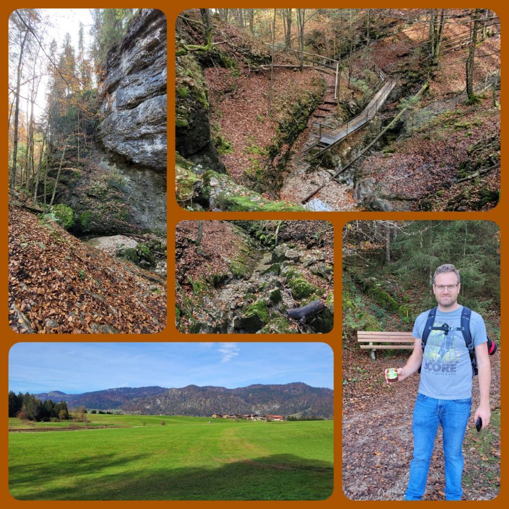 Kurzentschlossen, wie so häufig ;-), hat Sabrina in der Früh noch eine Wanderroute in der Klausenbachklamm gefunden. Kurz das wichtigste zusammengepackt und schon ging es los nach Reit im Winkl. Die ganze Fahrt war es „grau in grau“, eine richtig dicke trübe Suppe. Aber in den Bergen könnte es ja immerhin schöner sein? Ich sah schon unsere Hoffnungen schwinden, als wir in Marquartstein die Berge immer noch nicht sehen konnten. Doch dann – ein paar Kilometer vor Reit im Winkl reißt es auf und wir fahren aus dem Nebel in die Sonne hinein!