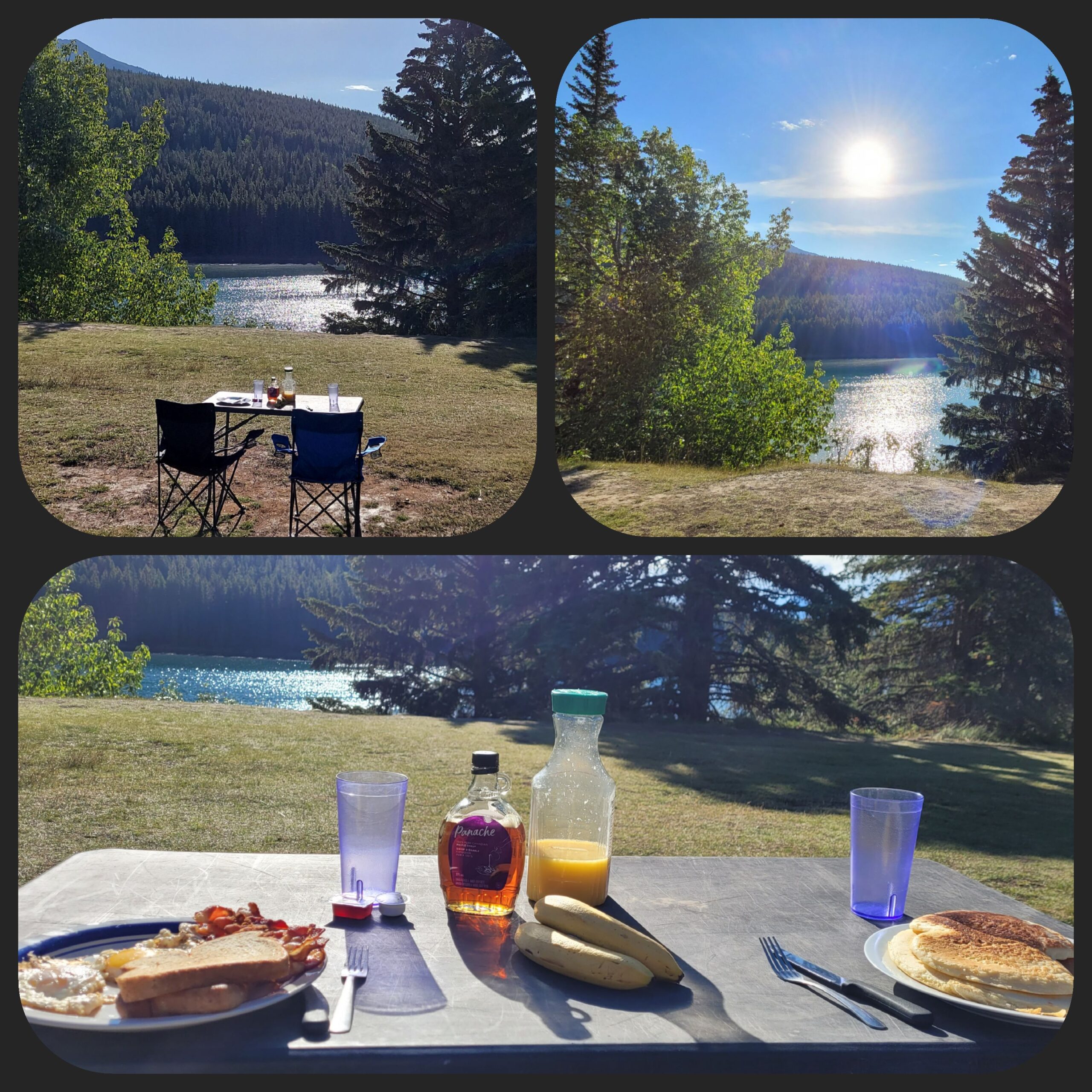 Direkt anschließend bzw. vom Minnewanka übergehend, liegt der Two Jack Lake. Dort haben wir ein schönes Plätzchen gefunden und Frühstück gemacht😋🥓🍞🍳🥞 der Ausblick hat sich jedenfalls sehen lassen können..