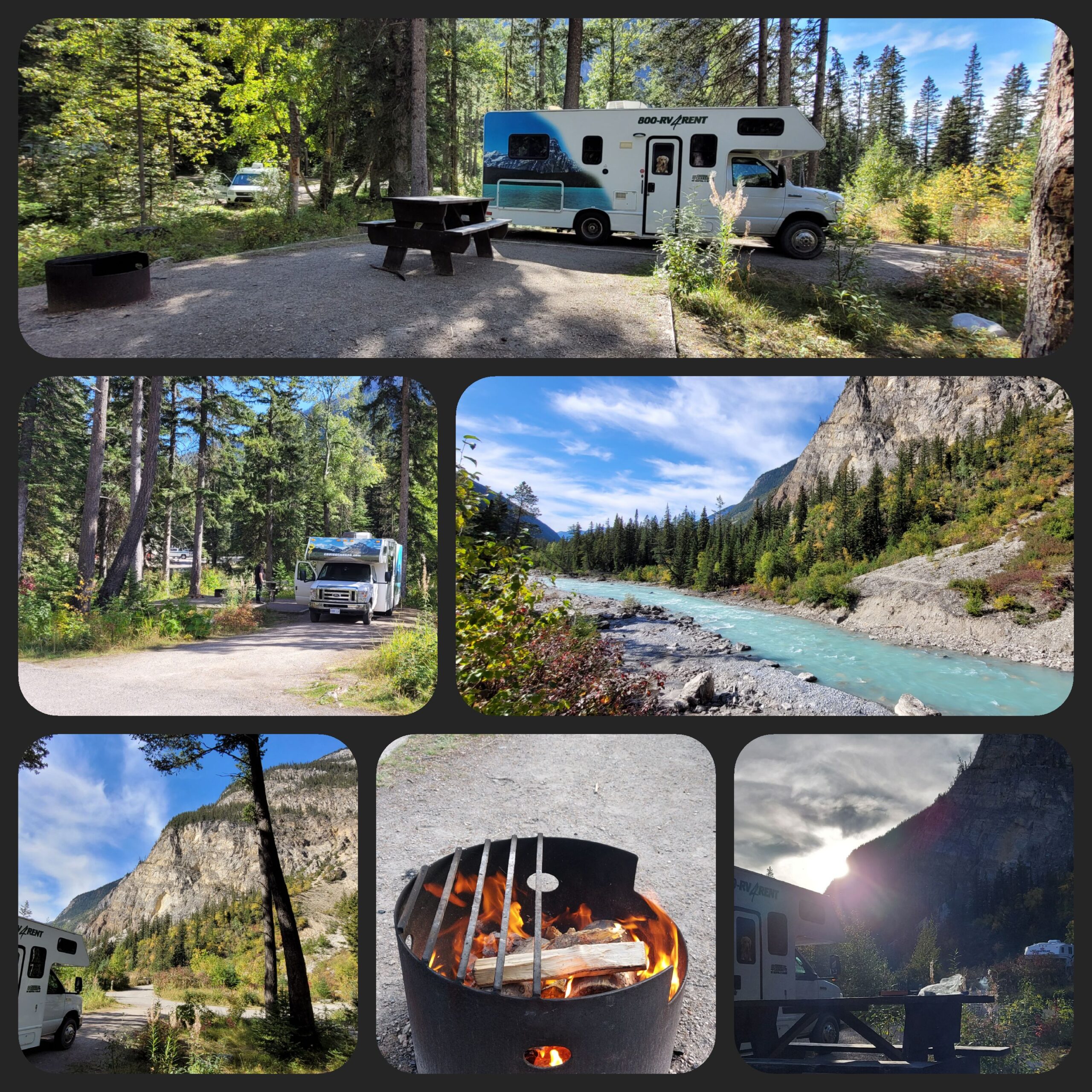 Unser heutiger Campground mit schöner Aussicht und direkt am Kickin Horse River.