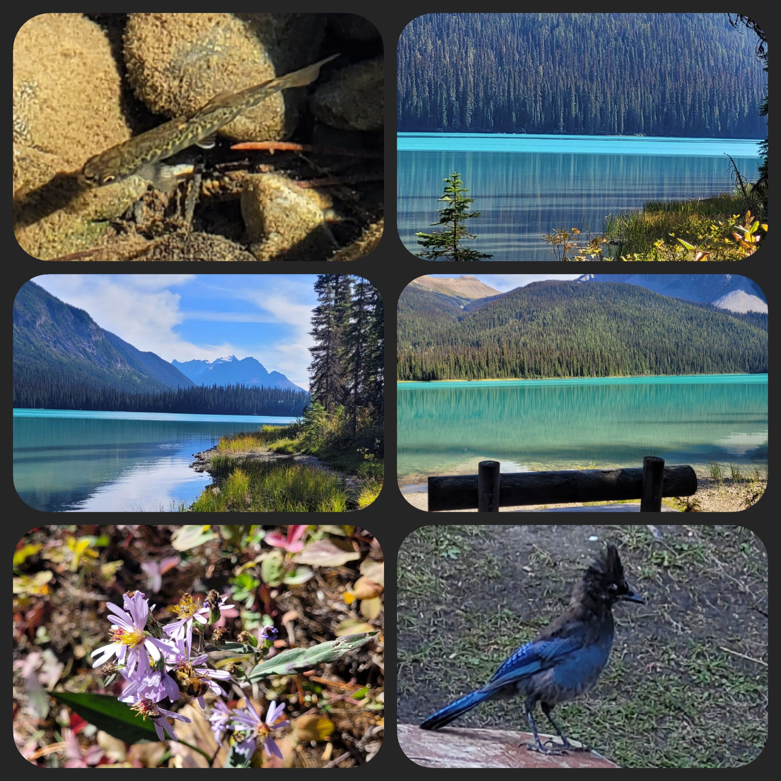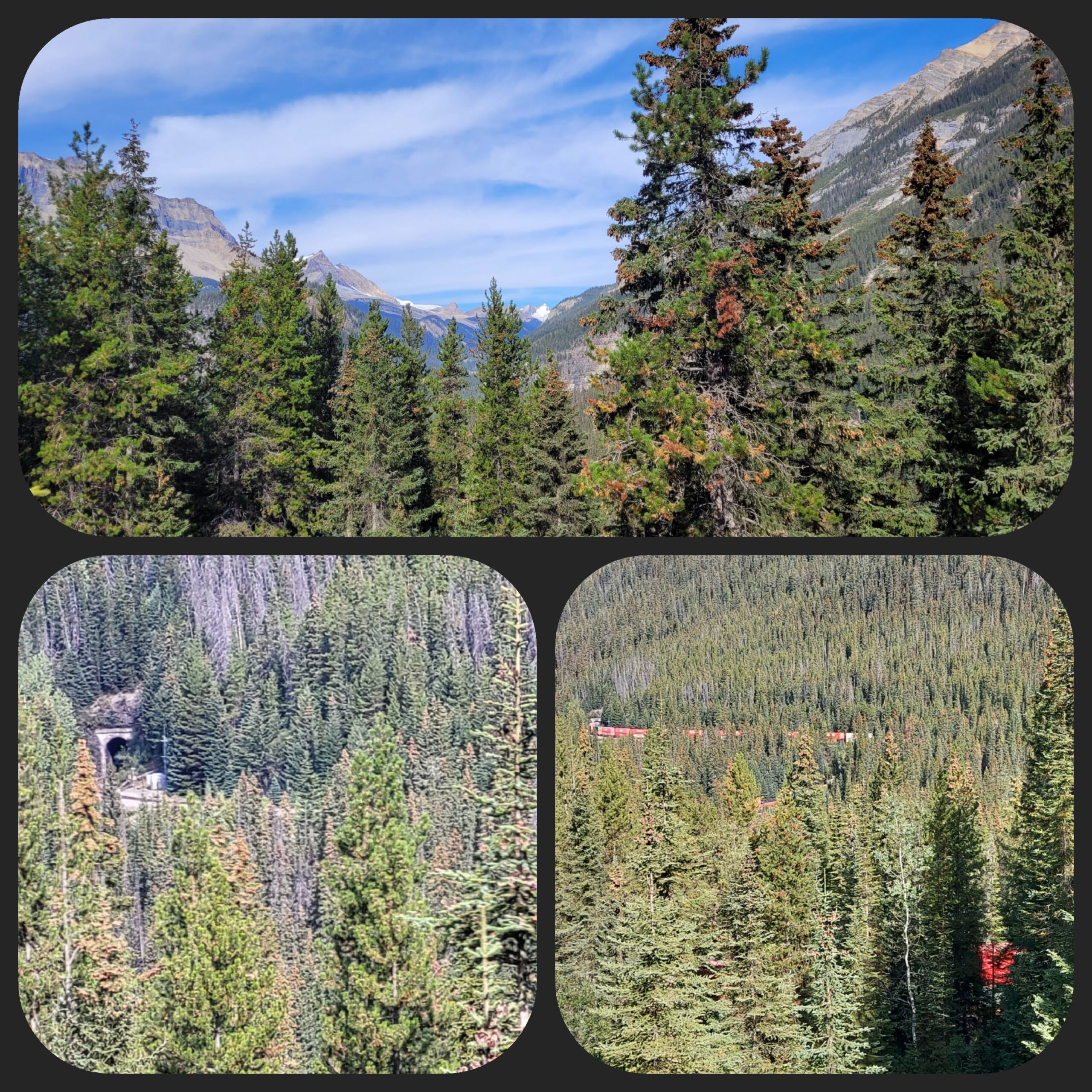 Frisch gestärkt ging es dann weiter Richtung Emerald Lake. Unterwegs haben wir noch einen Aussichtspunkt auf eine geschichtsträchtige Eisenbahnstrecke🚂🚃 gefunden. Dort gibt es 2 sogenannte „Spiral Tunnel“. NATÜRLICH mussten wir dann warten bis ein Zug kam, damit der Eisenbahner auch auf seine Kosten kommt. Blöd nur, dass man dann ungefähr 15 min da steht bis dieser ewig (nachgerechnet ungefähr 3,5 km) lange Zug an einem vorbei und durch die Tunnel wieder rauskommt.
