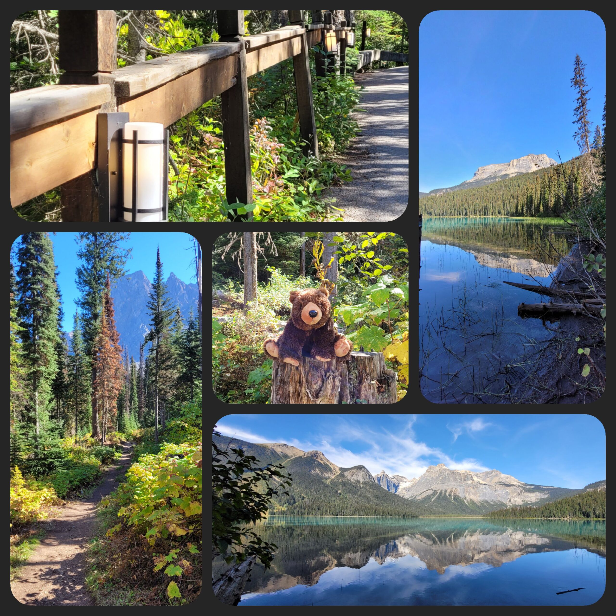 Endlich am Emerald Lake angekommen, hatten wir Glück und haben den letzten RV Parkplatz bekommen. Im vorderen Bereich sind leider sehr viele Touristen unterwegs. Wir sind lieber den 5,2 km langen See Rundweg gegangen – dort war es viel ruhiger und man hatte schönere Aussichten.