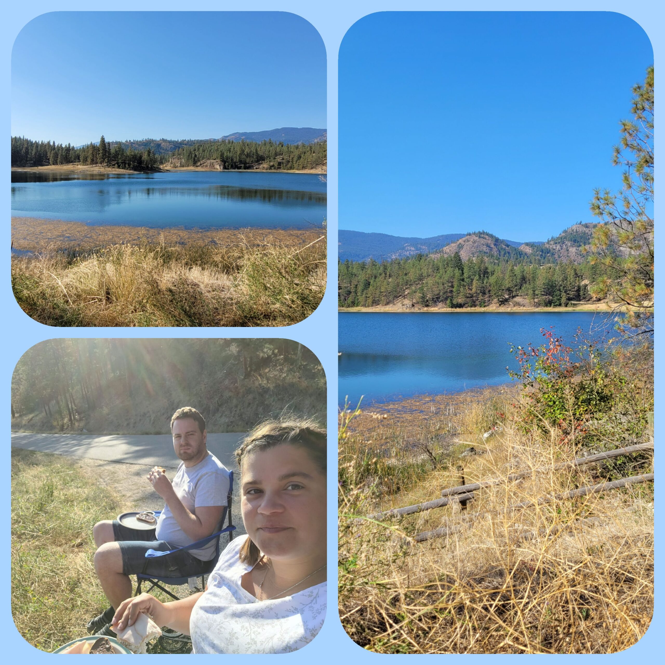 Heute sind wir nach Osoyoos gefahren. Diesmal nicht über den Highway sondern über eine kleine kurvige Nebenstrecke, mit viel Serpentinen 🙈 Frühstück gab’s Diesmal dann am Mahoni Lake. Der Ausblick könnte schlechter sein🏞