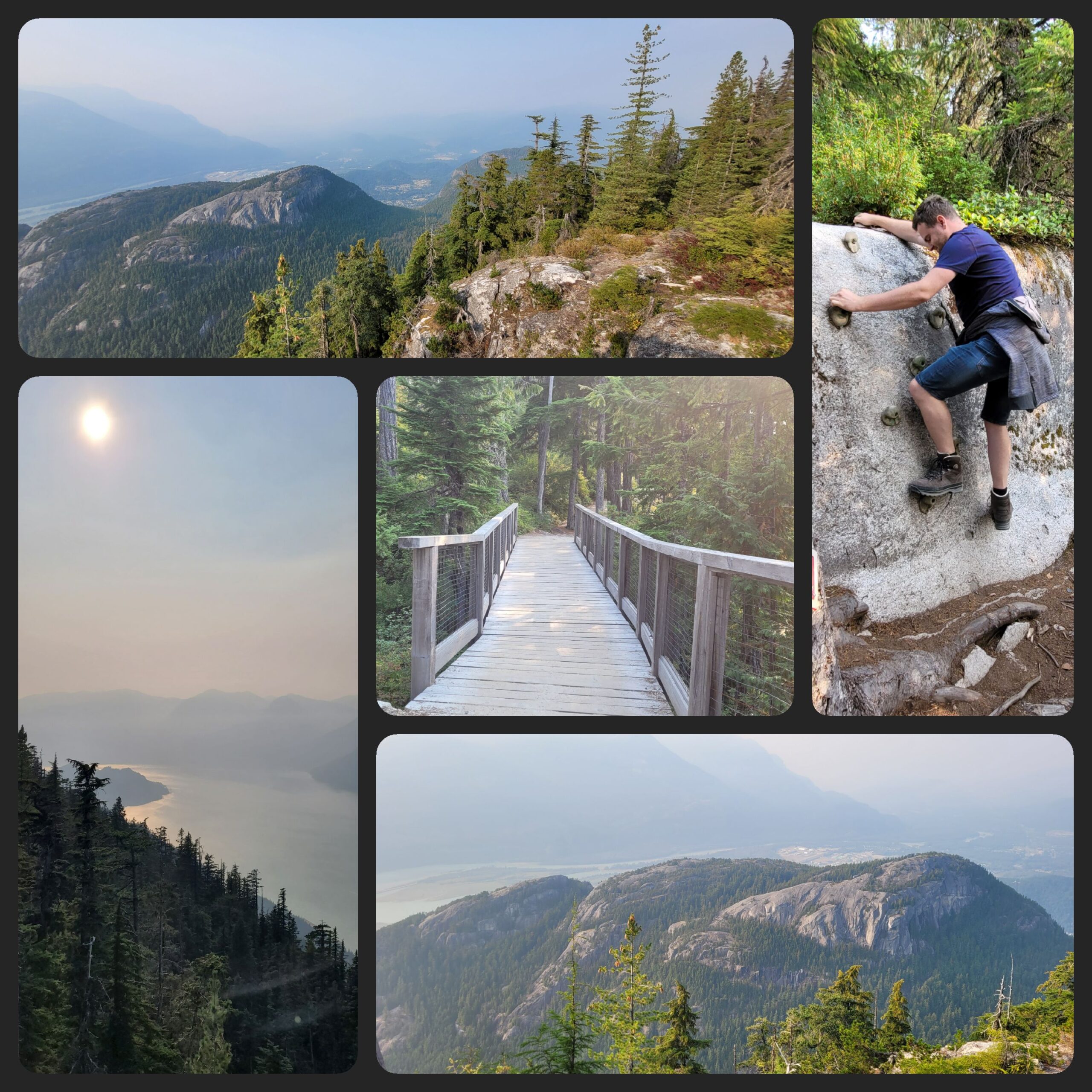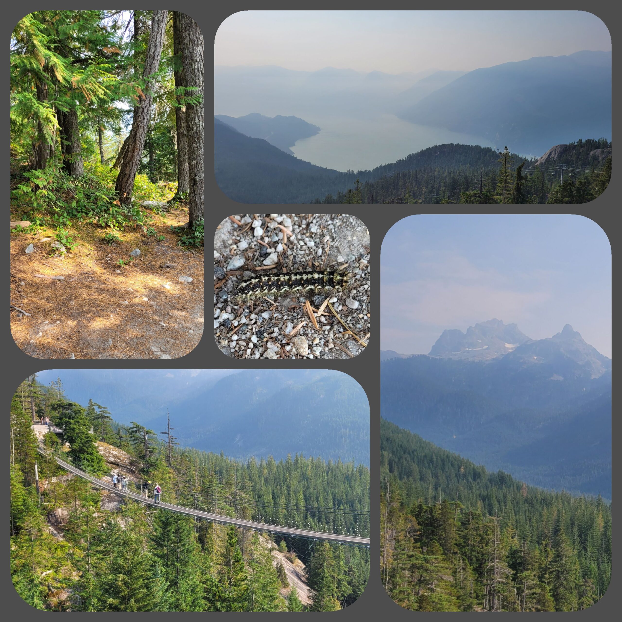 Danach ging es weiter zur Sea-to-Sky Gondel. Von dort oben hat man einen wunderschönen Blick über den Fjord und die umliegenden Berge, eigentlich…. wie gesagt, heute war es leider etwas neblig…die wackelige Hängebrücke sind wir trotzdemgegangen.😀
