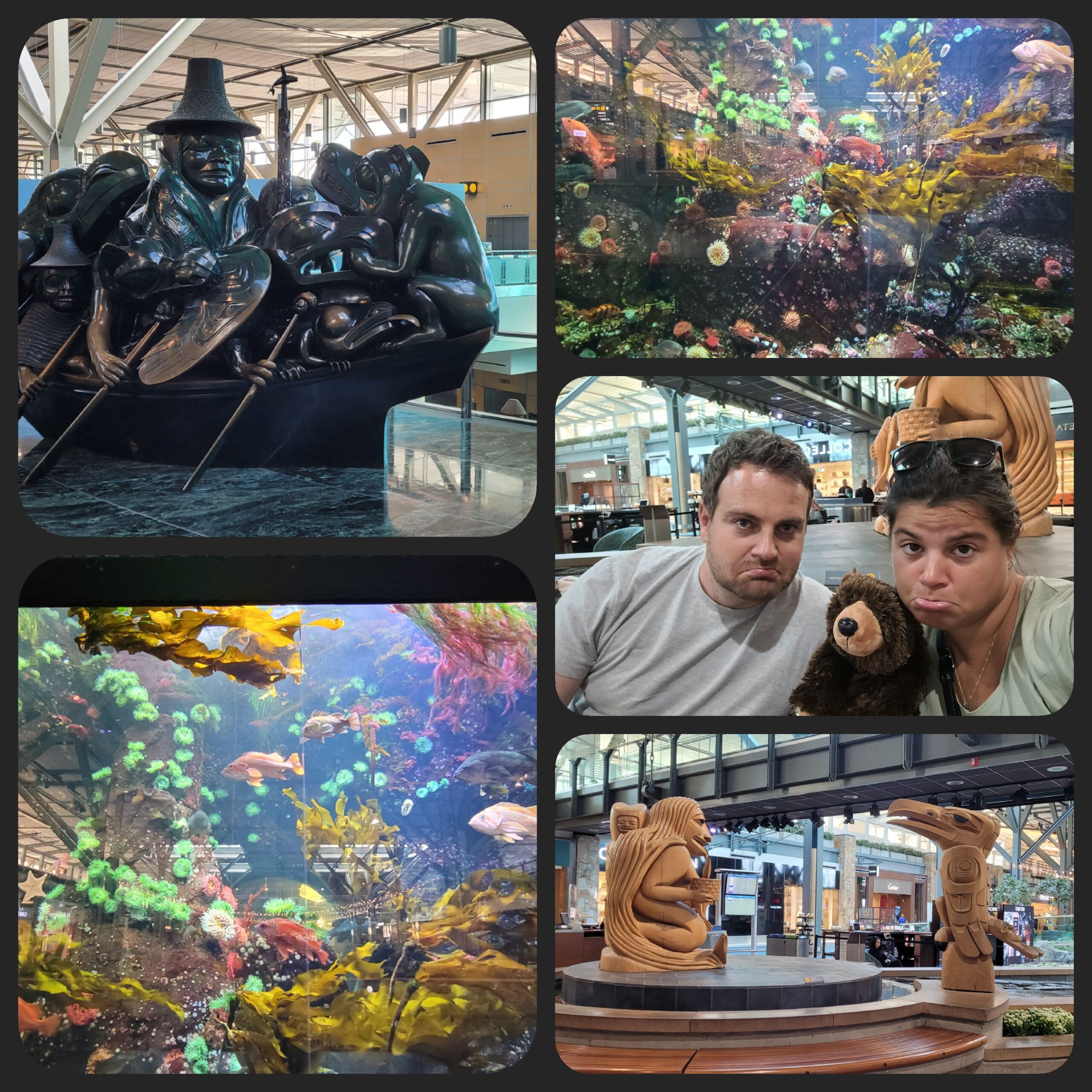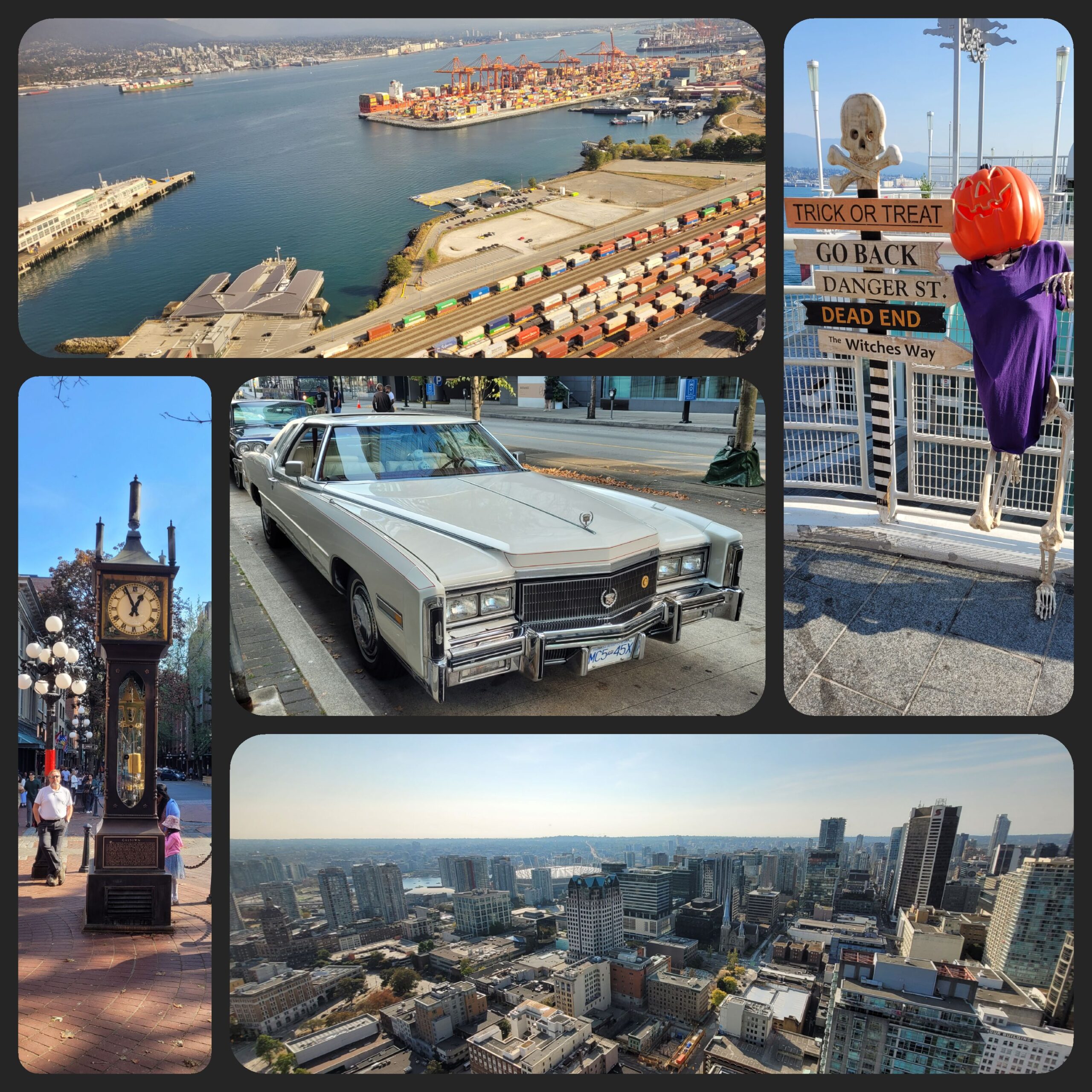 Nach einem echt super Frühstück in unserem B&B haben wir und den Fly over Canada angschaut. Ein 4 D Kino in dem man quasi über Kanada hinweg fliegt. Und da bald Halloween ist, wird man von einer Hexe und ihrem fetten lila Kater begleitet🤣 Danach gings hoch hinauf auf den Lookout. Von dort hat man echt einen super Blick über ganz Vancouver. Da noch etwas Zeit übrig war bis wir zum Flughafen mussten, haben wir noch einen kleinen Abstecher nach Gastown zur Steamclock gemacht. Einer alten Dampfuhr, welche alle 15 Minuten 🎶 Musik macht.
