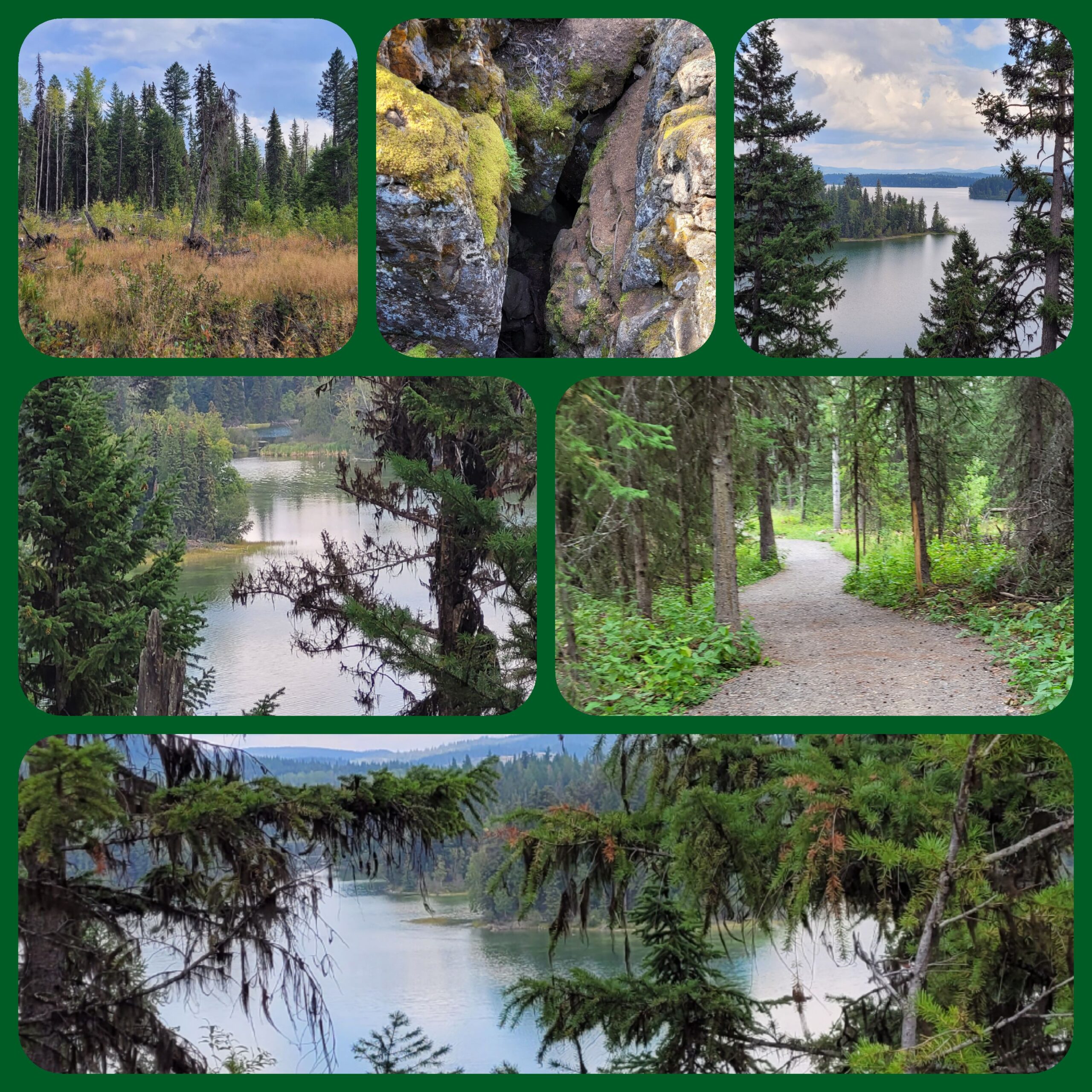 Die Strecke nach Clearwater war dann nicht sonderlich spannend. Ewig gerade Straßen mit viel Wald oder alternativ Seen links und rechts. Durch Zufall haben wir an der Strecke einen Hinweis auf ‚Ice caves‘ gesehen. Um dorthin zu gelangen gibt es mehrere kurze Wanderwege. Wir haben uns für den „Owl Trail“ entschieden. Netter, kurzer Trail mit Blick über den Bridge Lake. Die Ice Caves waren allerdings leider ohne Eis🧊🧊