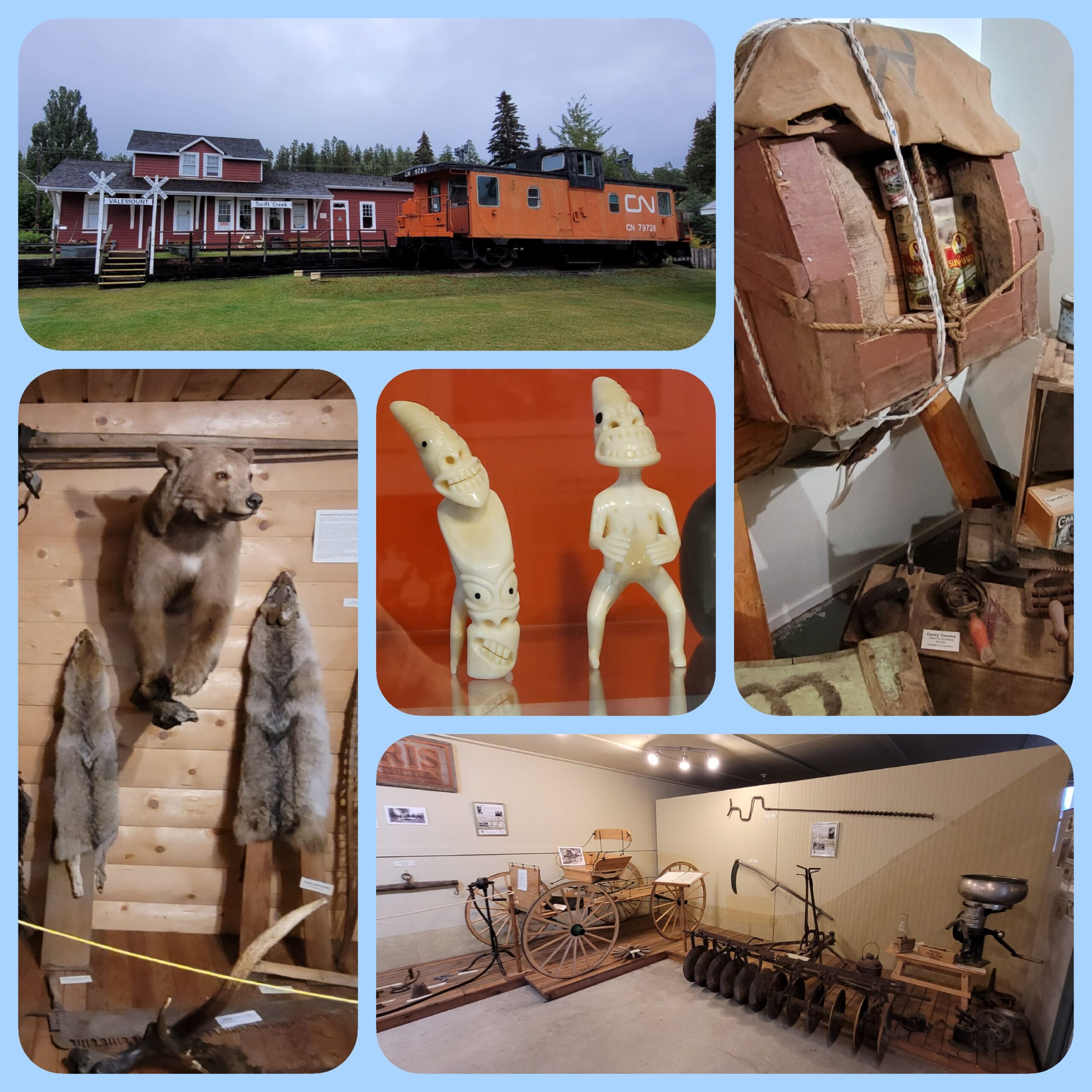 Unterwegs haben wir dann noch im kleinen Städtchen Valmount gehalten. Wir hatten gelesen, dass er dort ein kleines Heimatmuseum mit kostenlosem Eintritt (eine Spende wird aber gern gesehen) gibt. Dort findet man einiges zur Geschichte des Ortes sowie seinen Gründerfamilien und wie diese früher gelebt haben. 🐴🛖🛶🪓🎣 Außerdem, sehr zur Freude von Markus, haben sie einen kleinen Teil Eisenbahn Geschichte gezeigt und einige Exponate da. Man konnte die Modelleisenbahn sogar durch das Klo fahren lassen! 🚂🚽