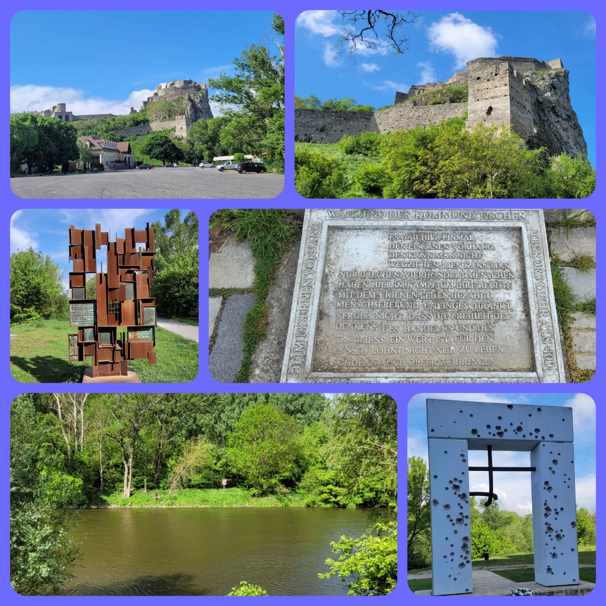 Aber in alter Tradition wurde der Tag natürlich mit einer Wanderung begonnen. Diesmal auf die Burg Devin. Eine Burg, die aus 3 einzelnen Burgen besteht und erstmal bereits 864 n.C. erwähnt wurde. Devin steht auf einem Felsen direkt an der Donau und Mündung der March. Zu Zeiten des eisernen Vorhangs versuchten viele Leute über die kleinere March in Freiheit zu gelangen, allerdings kostete dieser Versuch über 400 Menschen das Leben. In Gedenken an diese Personen sowie als Mahnmahl für den eisernen Vorhang, gibt es dort zwei Denkmäler direkt am Wasser. Auf der Burganlage selbst gibt es viele Ruinenteile, einen 55 m tiefen Brunnen und einige „Kellerhöhlen“ zu sehen. Außerdem gibt es dort eine besonders seltene Flora und div. Kleine Mitbewohner.