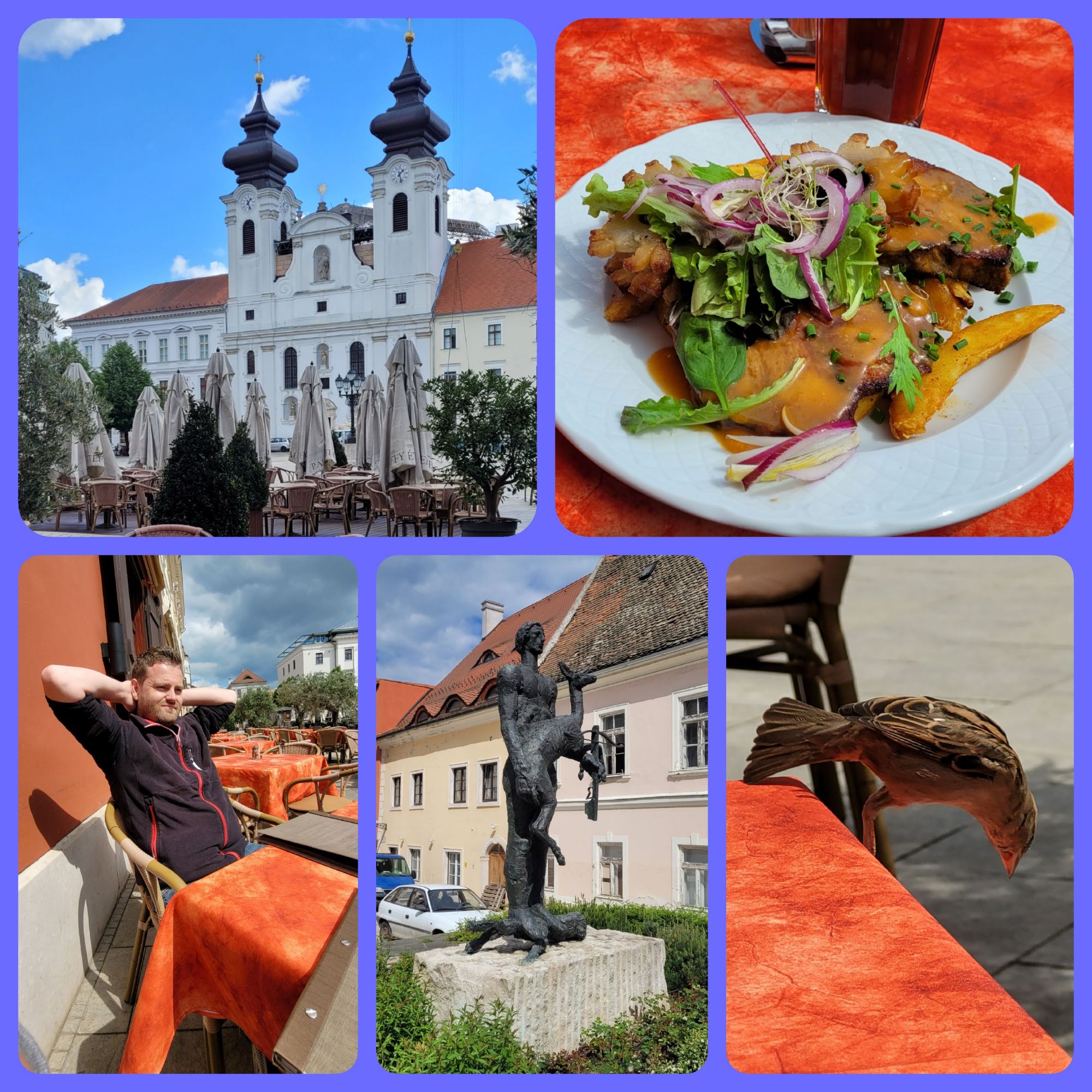 Nächster Zwischenstopp war Györ. Eine nette kleine Stadt mit schöner Kathedrale. Dort gab’s dann endlich auch Frühstück/Mittagessen.