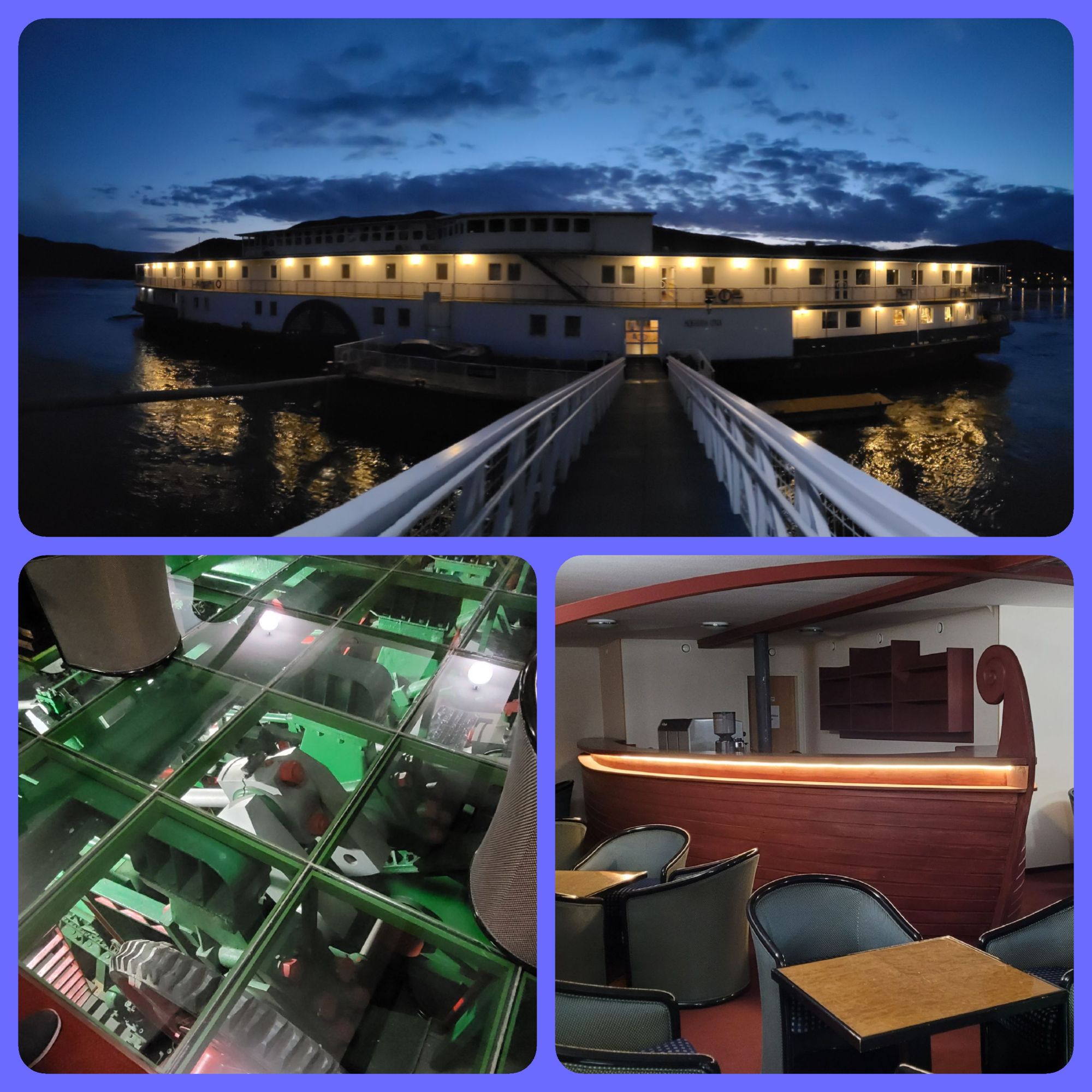 Hier haben wir für die nächsten 3 Tage auf einem Hotelboot auf der Donau eingecheckt. Das Schiff ist ein Schaufelraddampfer von 1903.