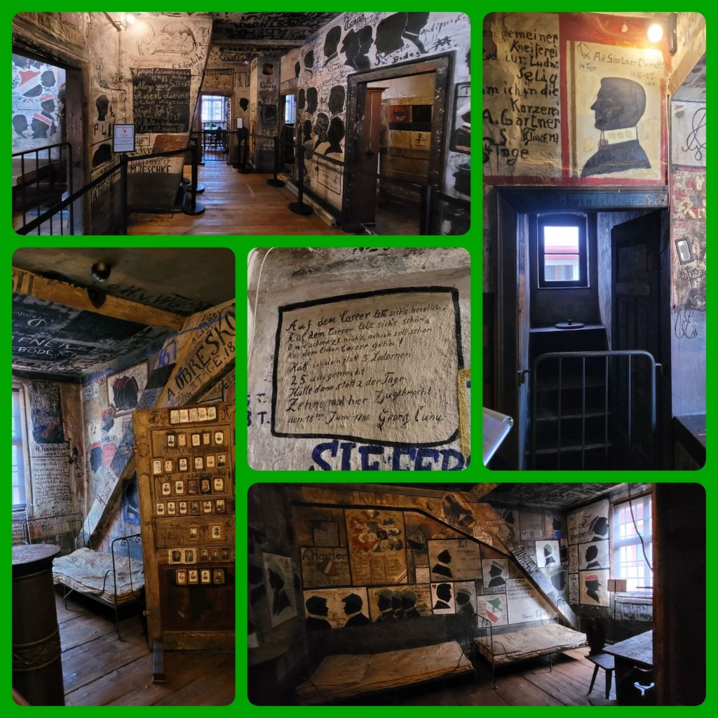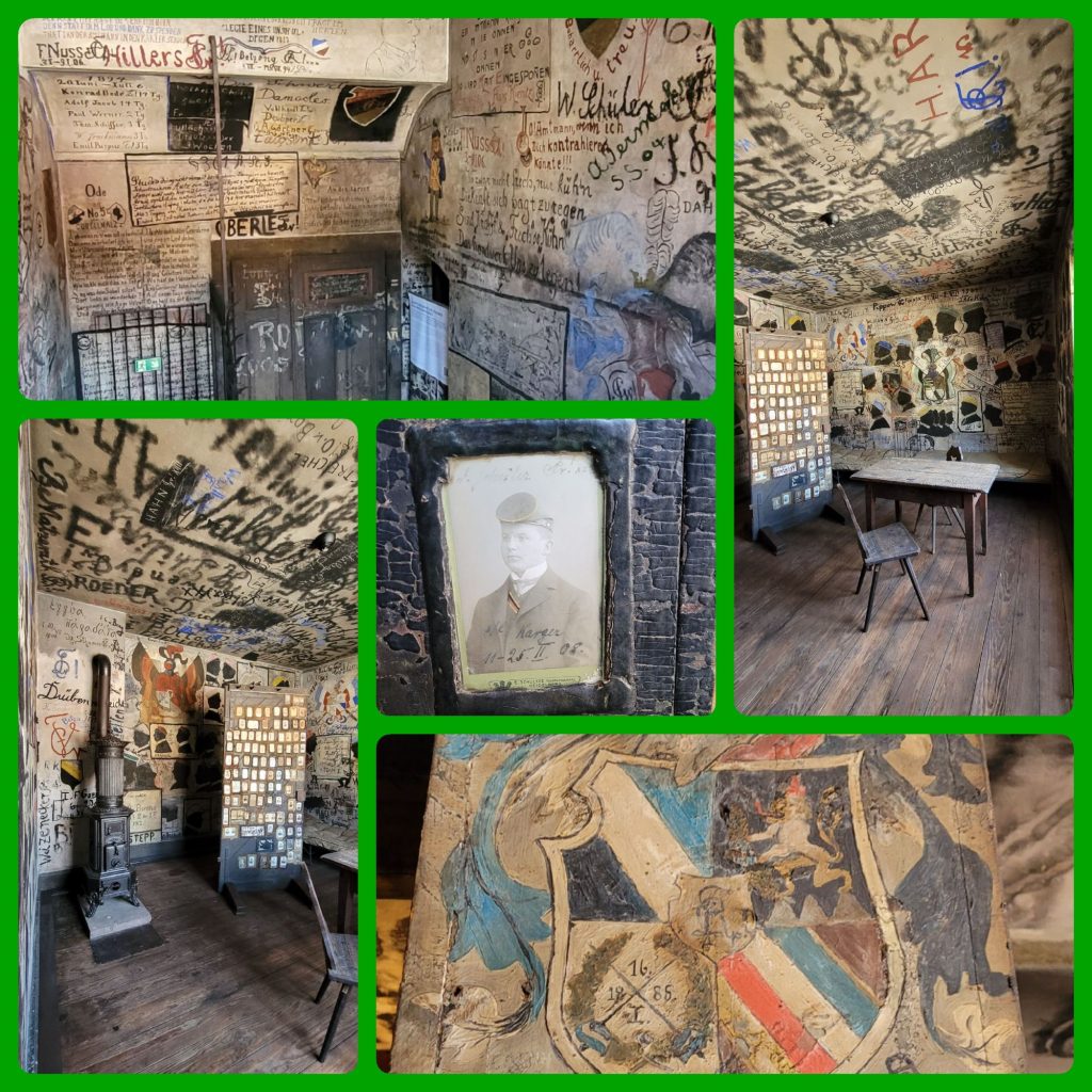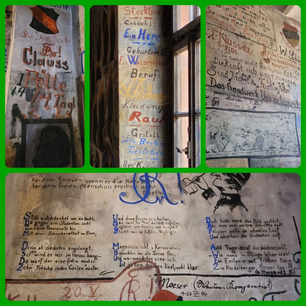 Wieder auf Normalhöhe gings schnurstracks zum Universitätsmuseum. Mit der Geschichte von Deutschlands ältester Uni, der gut 500 Jahre alten Alten Aula und… Dem Studentenkarzer. Eine Art Gefängnis für ungehorsame Studenten. 😅 Über die Jahrhunderte sammelten sich die skurrilsten Graffiti an den Wänden an. Gedichte, Gemälde, Karikaturen oder bloß die Namen und Aufenthaltsdauer der Insassen… Äußerst skurril 😅