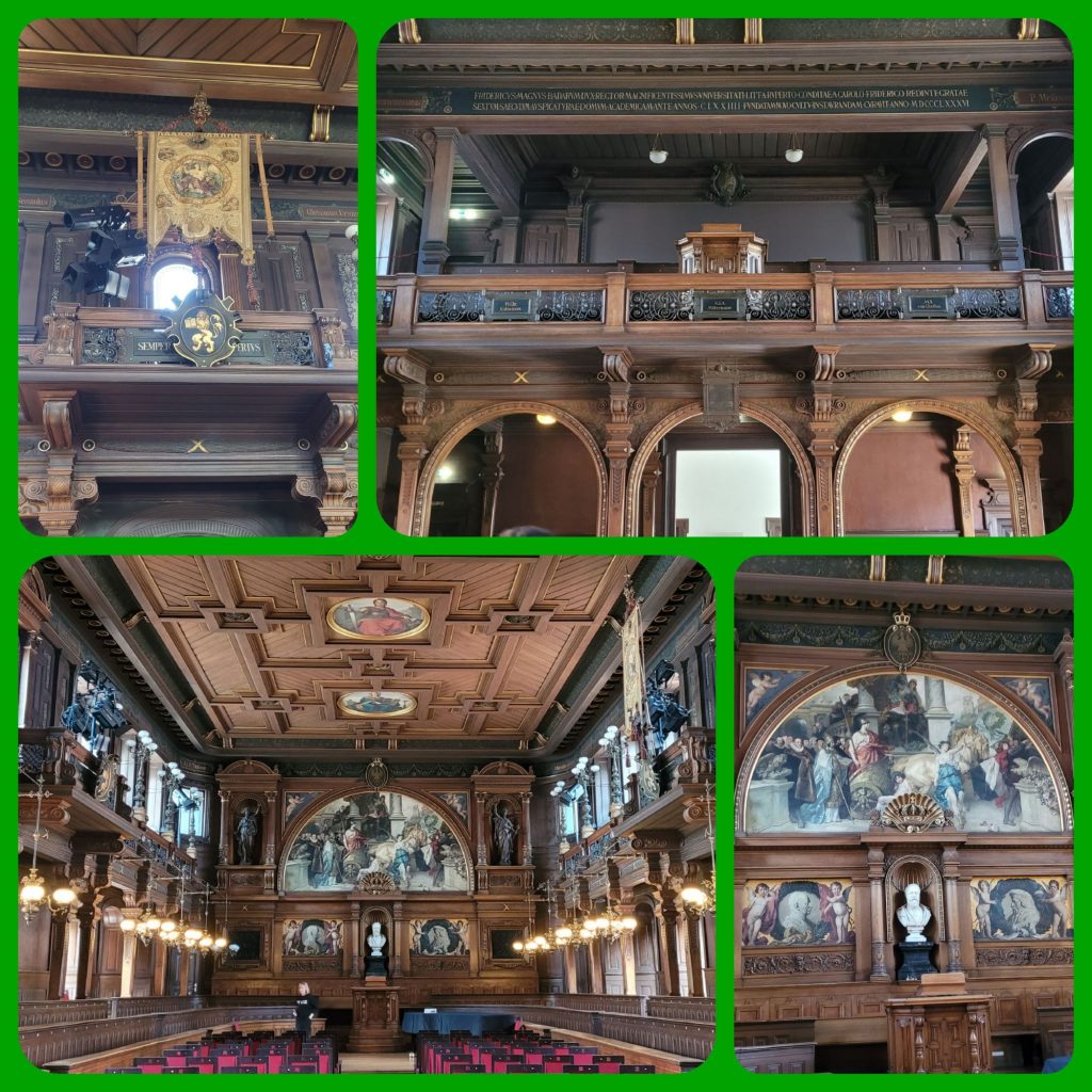 Die alte Aula. Unter der „modernen“ Decke befindet sich wahrscheinlich immer noch das alte original Deckengemälde aus dem 16 Jh. (Aus dieser Zeit stammt der Raum samt Ausstattung noch)