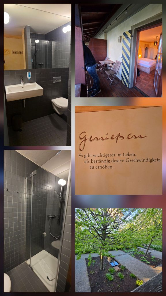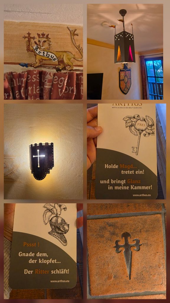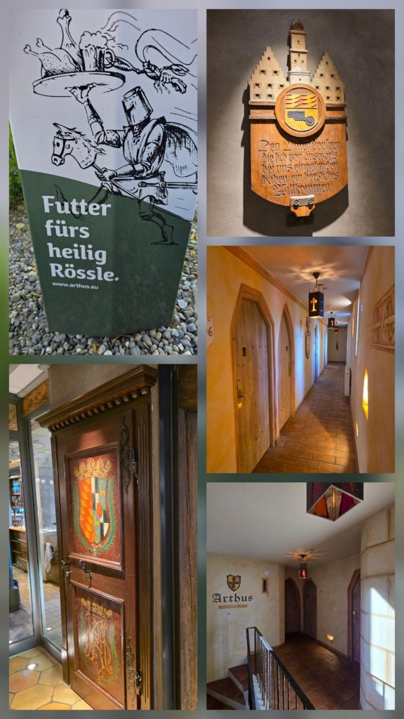 Um Viertel nach 4 habe ich Sabrina von der Arbeit abgeholt, nachdem sie den Tag schon beim Tatzlwurm in der Nähe von Brannenburg verbracht hatte. Ein fliegender Wechsel nach Aulendorf quasi. 😂 Und: Wer kennt denn Aulendorf nicht? Nach ein bisschen Stau und einer Fahrt quer durch die Pampa sind wir angekommen im Hotel Arthus, einem mittelalterlichen Hotel.